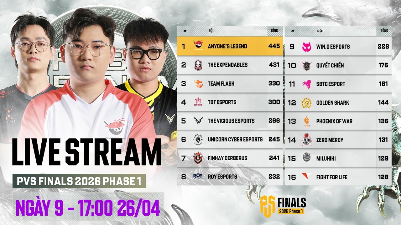 🏆 16 ĐỘI TUYỂN THAM DỰ PVS FINALS 2026 PHASE 1 ⭐ 3 Đội Tuyển Được Mời: 🇻🇳 Anyone's Legend 🇻🇳 The Expendables 🇻🇳 FINHAY CERBERUS ⭐ 13 Đội Tuyển Đứng Đầu PVS Cup: 🇻🇳 Team Flash 🇻🇳 TDT Esports 🇻🇳 The Vicious Esports 🇻🇳 Unicorn Cyber Esports 🇻🇳 ROY Esports 🇻🇳 Quyết Chiến 🇻🇳 Win.D Epsorts 🇻🇳 MILUHIHI 🇻🇳 SBTC Esport 🇻🇳 Phoenix Of War 🇻🇳 Golden Shark 🇻🇳 Zero Mercy 🇻🇳 Fight For Life ❗ Lưu ý: 🔸 Nhà vô địch PVS 2026 Phase 1 sẽ được quyết định bằng tổng điểm sau 60 trận cùng số tiền thưởng và số điểm PGC lớn. 🔸 3 đội có nhiều điểm nhất mỗi tuần sẽ nhận về số điểm PGC tương ứng: 70 điểm - 35 điểm - 20 điểm. ▬▬▬▬▬▬▬▬▬▬ 🪂 PVS Finals 2026 Phase 1: Thi đấu 12 ngày, mỗi ngày 5 trận. Bắt đầu từ 1️⃣7️⃣h các ngày: 🔹 Tuần 1: 10/04 - 11/04 - 12/04. 🔹 Tuần 2: 17/04 - 18/04 - 19/04. 🔹 Tuần 3: 24/04 - 25/04 - 26/04. 🔹 Tuần 4: 01/05 - 02/05 - 03/05. 🔥 Đạt thứ hạng cao tại PVS Finals 2026 Phase 1 sẽ giúp các đội tuyển: 🔹 Giành tổng giải thưởng lên tới 35,000 USD (~921 triệu VNĐ). 🔹 Nhận điểm PGC tương ứng theo thứ hạng (chi tiết sẽ được công bố sau). Điểm PGC để giành vé tham dự PGC 2026 - Giải vô địch PUBG thế giới 2026. 🏅 2 đội tuyển đứng đầu PVS Finals 2026 Phase 1 sẽ giành quyền tham dự EWC 2026 và 6 giải PGS (PGS 7 ➡️ PGS 12). 🥇 Đội tuyển giành nhiều điểm nhất sau 4 tuần trở thành Nhà Vô Địch của PVS 2026 Phase 1. 🪂 Thể thức thi đấu PVS 2026 Phase 1: 🔹 Tổng giải thưởng: 50K USD (~1.3 Tỷ VNĐ). 🔹 Số trận: 05 trận/ngày. 🔹 Luật S.U.P.E.R 5.0 áp dụng cho PVS Cup, PVS Finals. #PUBG #PUBGVN #BATTLEGROUNDS #PUBGEsports #PUBGEsportsVN #PVS #PUBGVietnamSeries #PVS2026Phase1 #PVSFinals2026Phase1