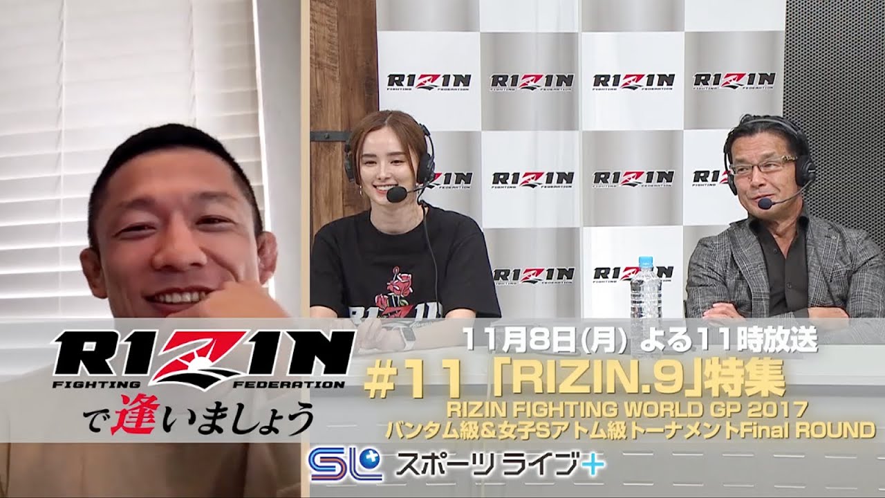 2015年12月から始まり、これまでにいくつもの名試合を生み出してきた総合格闘技イベントRIZIN。 そんなRIZINを、榊原信行CEOやRIZIN総合演出の佐藤大輔氏、実況の鈴木芳彦氏らが、RIZINのリングで激闘を繰り広げてきたファイターとともに、2015年の旗揚げ大会から振り返る『RIZINで逢いましょう』の放送がスタート! ここでしか聞くことができない思い出話や、関係者しか知らない裏話が聞けることも…?! スポーツライブ+で『RIZINで逢いましょう』を是非チェックしよう! ーーーーーーーーーーーーーーーーーー #11:RIZINで逢いましょう 〜RIZIN.9〜 解説:堀口恭司、榊原信行、くるみ、佐藤大輔(佐藤映像代表) 実況:鈴木芳彦 初回放送予定:2021年11月8日(月)23:00- ※「スポーツライブ+」は、スカパー!やJ:COM等のCATVでご視聴いただけます。 ーーーーーーーーーーーーーーーーーー ▼「RIZINで逢いましょう」(スポーツライブ+) ご視聴方法▼ https://www.sportslive-plus.com/howto/ ▼Follow RIZIN FIGHTING FEDERATION Website:https://jp.rizinff.com/ Twitter:https://twitter.com/rizin_PR Instagram:https://www.instagram.com/rizin_pr/ LINE:https://lin.ee/obLA11b 17LIVE:https://17.live/profile/r/14299002 TikTok:https://vt.tiktok.com/ZSJHJFf2v/ #MMA #堀口恭司 #くるみ