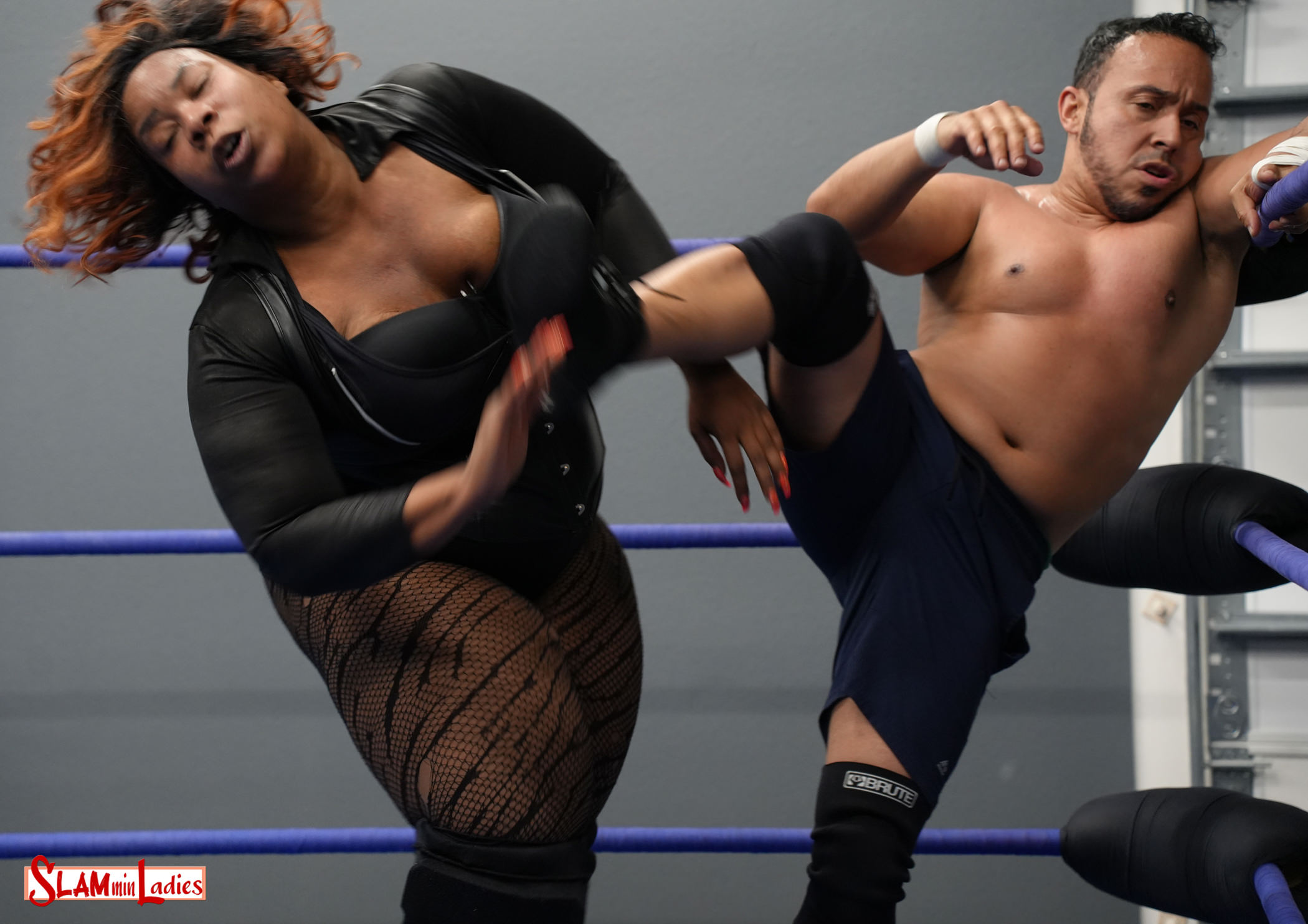 Things start off tense as Roni and Mike stare each other down before trading mocking remarks about each other, but that’s nothing compared to when they start trading chops. Thunderous and extremely painful-looking chops and slaps from both wrestlers pepper this hard-hitting 1 Fall matchup. Mike gets in the first nasty chop, then chokes Roni over the middle rope. Roni battles back, squashing Mike with a running splash in the corner and a Camel Clutch. The two trade kicks, stomps, chokes and beatdowns in the corners. Roni even takes things to the floor after her running splash in the corner leaves Mike halfway out of the ring. From the floor, Roni slams Mike’s head on the ring apron, stands on his back on the floor, and delivers one of many blistering chops to the chest. Back in the ring, a kick from Mike nets him a 2 count. Roni answers with a wicked Clothesline that turns Mike inside out, then hits him with a pair of splashes. But after positioning Mike in the corner, Roni charges but runs into a big boot. Both wrestlers are nearly out on their feet, which one can dig deep down and pull out the one move needed to put away their opponent?