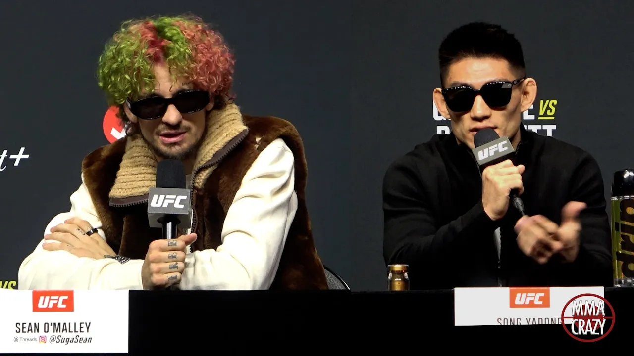 Sean O’Malley and Song Yadong Press both go back & forth and argue at the pre fight press conference for their fight that will take place at UFC 324 #UFC324 #SeanOMalley #SongYadong Twitter: http://www.twitter.com/MMACrazy Instagram: http://www.Instagram.com/MMA_Crazy Click on the link below to subscribe http://www.youtube.com/user/mmacrazytv?sub_confirmation=1