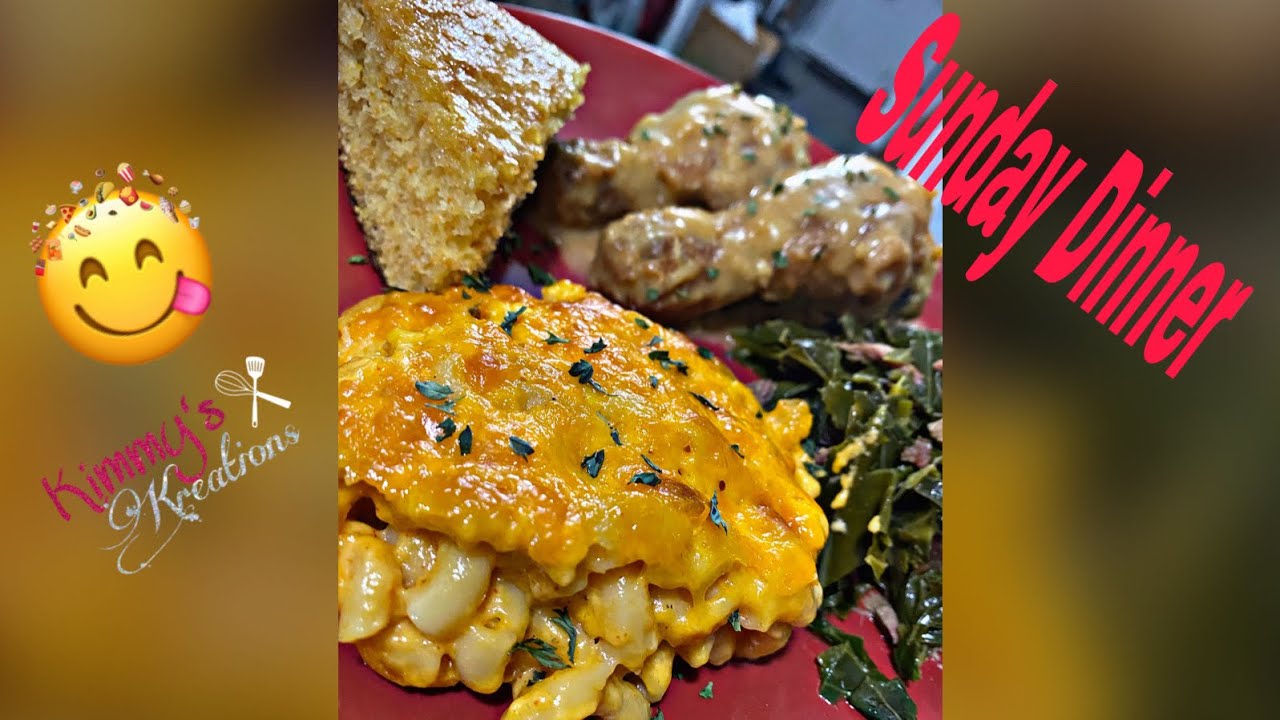 Smothered chicken, baked Mac and cheese, cornbread and collard greens!