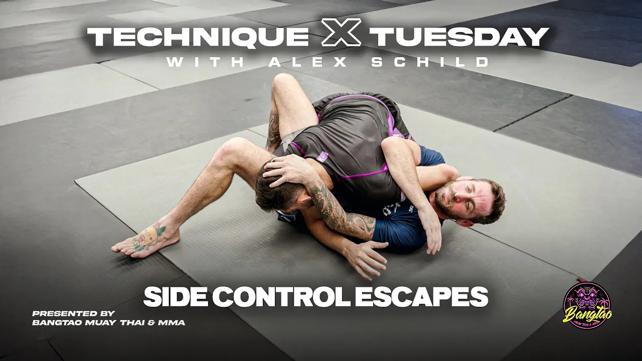 #mma #jiujitsu #bjj Bangtao Muay Thai & MMA Head Jiu-Jitsu Coach Alex Schild demonstrates key side control escapes for Brazilian Jiu-Jitsu and MMA. Learn how to create space, regain guard, and reverse the position with fundamental techniques that work at every level. Perfect for fighters and grapplers looking to improve their BJJ defense, escapes, and overall ground game. LINKS: Main Site: https://bangtaomuaythai.com/ Memberships: https://bangtaomuaythai.com/bookings/ Our Merch & Fight Wear: https://bangtaofightstore.com/ Instagram: https://www.instagram.com/bangtaomuaythaimma/ Facebook: https://www.facebook.com/bangtaomuaythaimma