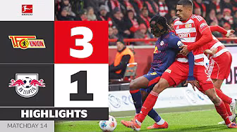 1. FC Union Berlin vs. RB Leipzig – Highlights from Matchday 14! ► Sub now: https://redirect.bundesliga.com/_bwCS Watch the Bundesliga highlights of 1. FC Union Berlin vs. RB Leipzig from Matchday 14 of the 2025/26 season! Goals: 1-0 Burke (57’), 1-1 Gomis (60’), 2-1 Ansah (64’), 3-1 Skarke (90’+3) ► Watch Bundesliga in your country: https://redirect.bundesliga.com/Bunde... ► Join the conversation in the Bundesliga Community Tab: https://www.youtube.com/bundesliga/co... We’ve seen another Matchday full of unmissable Bundesliga drama. Don’t miss any highlights from Germany’s football league! The Official Bundesliga YouTube channel gives you access to videos about the greatest goals, best moments and anything else you should know about. Make sure to subscribe now and visit us at https://bndsl.ga/comYT to find out more about the fixtures, analysis and news about your favourite team!