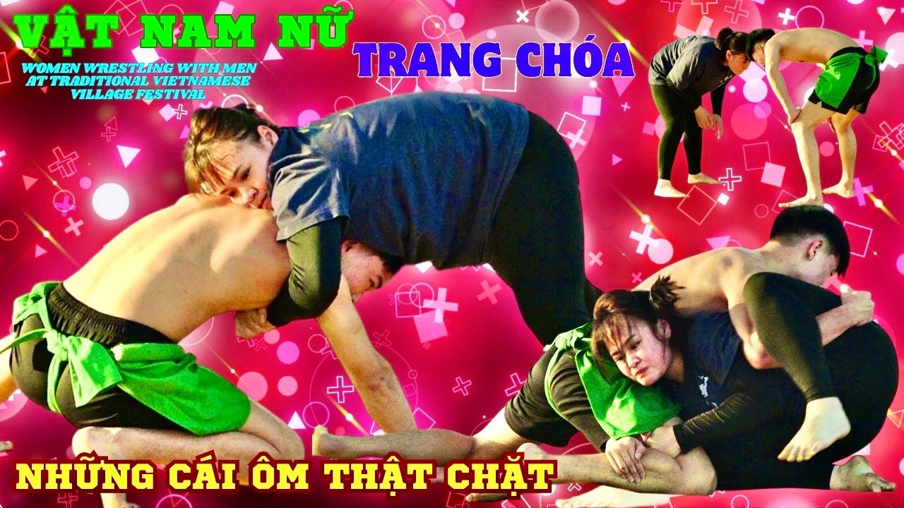 VẬT NAM NỮ - CHANG CHÓA .Women wrestling with men at traditional Vietnamese village festival.