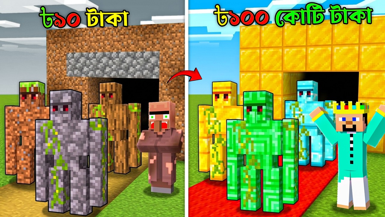 Villager POOR vs R2habib RICH Golem Army Survival Battle in Minecraft!. ___________________ ___________________ About The Video: Minecraft but UpGrading Golem Army , me vs villager in Minecraft , minecraft bangla ___________________ ___________________ Business mail : alhabibmd74@gmail.com ⚠ Disclaimer: [Copyright Disclaimer: - Under section 107 of the copyright Act 1976, allowance is mad for FAIR USE for purpose such a as criticism, comment, news reporting, teaching, scholarship and research. Fair use is a use permitted by copyright statues that might otherwise be infringing. Non- Profit, educational or personal use tips the balance in favor of FAIR USE.] _________________________________ _________________________________ 🔘: [ I am not the real owner of these background musics. The credit goes to the real owner of these music.] _________________________________ _________________________________ [ Hashtags🏷:- #minecraft #minecraftpe #minecraftbanglagameplay #bangla_gameplay #r2habib #minecraftbangla