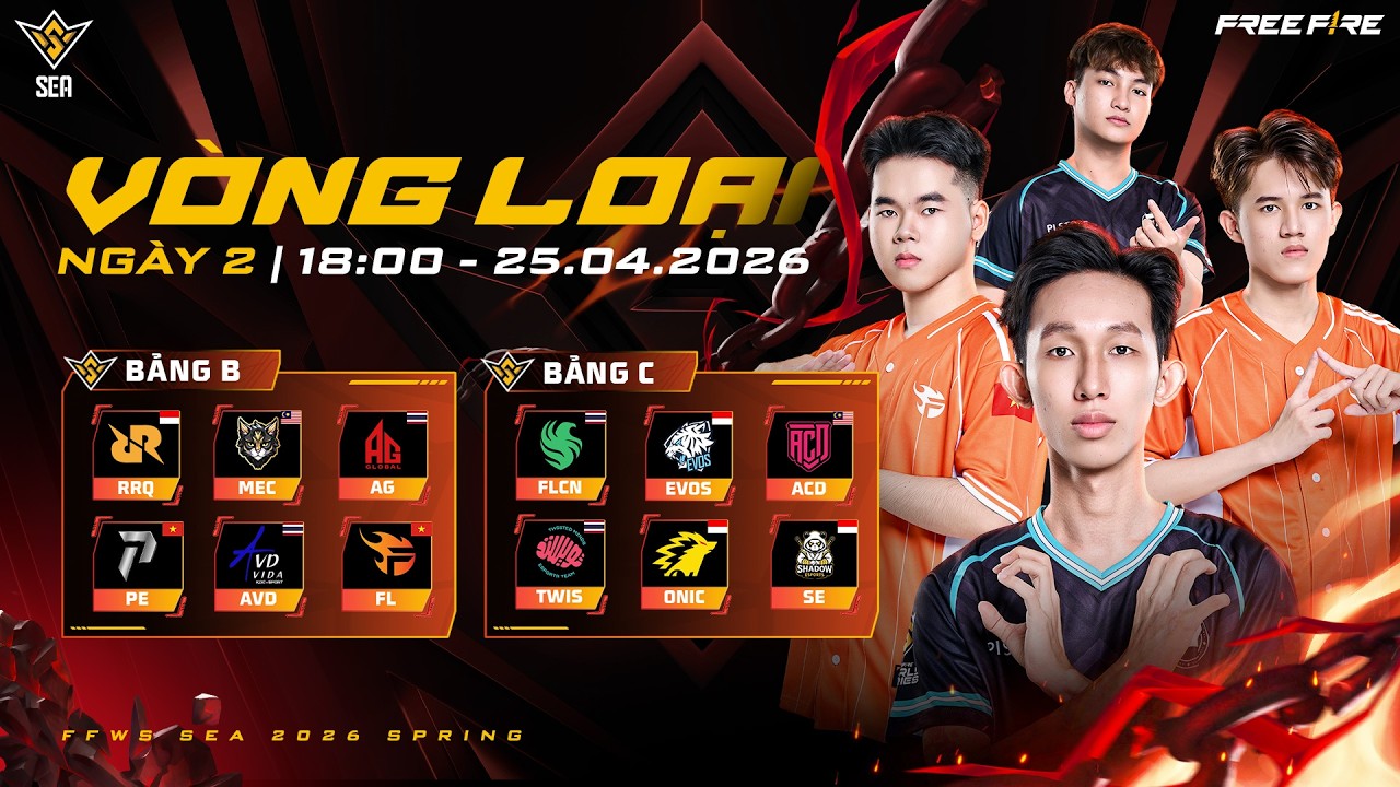 👉🏻 Ngày thi đấu thứ 2 hôm nay sẽ có mặt của 12 đội tuyển tới từ bảng B và C, với những cái tên vô cùng mạnh mẽ tới từ Thái Lan liệu P ESPORTS cùng Team FLASH sẽ có màn đối đầu thế nào?! Ngày thi đấu cuối cùng của các đội bảng B trong tuần 1 sẽ có kết quả ra sao? 📣 Cùng đón xem và cổ vũ các đội tuyển nha ae ơii 🥳🎉 ⏰ Trực tiếp vào lúc 18H00 ⏰ Lịch thi đấu Vòng Bảng Giai đoạn 1: 24.04 - 03.05.2026 Giai đoạn 2: 08.05 - 17.05.2026 ——— 📌 Trực tiếp trên các kênh sóng của Garena Free Fire VN #FreeFire #ffwssea2026 #ffwssea2026spring #UnleashYourFire ----- Instagram: https://www.instagram.com/freefirevnofficial/ Tiktok: https://www.tiktok.com/@freefirevnofficial Fanpage: https://www.facebook.com/freefirevn Trang chủ: https://ff.garena.vn Group thảo luận: goo.gl/t4Cuxi