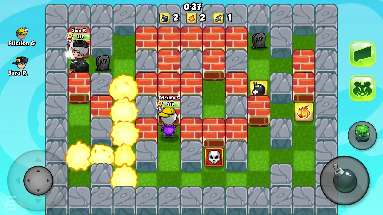 Bomber Friends | Android Gameplay | Friction Games -== Subscribe Click Here: https://goo.gl/Njk4R9 ==- Download Bomber Friends for free on Android, iOS,if you like this android games 2020 gameplay , please click on the like button and share the video! -SUBSCRIBE: http://www.youtube.com/channel/UCZpx-85XaZ4Tfs9FqWid64Q?sub_confirmation=1 -More Videos: https://www.youtube.com/channel/UCZpx-85XaZ4Tfs9FqWid64Q/videos -FaceBook: https://www.facebook.com/Friction-Games-1588987908087864/ -Google+: https://plus.google.com/u/1/109519595564705197996/posts -Twitter: https://twitter.com/friction_games About The Game: Get Bomber Friends now and join the immensely hectic and fun online multiplayer game! Bomb your friends and be the last to survive to win the match! Collect powerups to get more powerful bombs! Use the explosive bombs to blast your friends from across the map! And don't worry if you get blasted, then the fun has just begun! Dead bombers can haunt the living players and make their play harder with curses! Game Features: - Online multiplayer for 2-4 players! Challenge your friends or play against random opponents. - Classic Bomberman gameplay, with controls polished for touchscreen! - Collect powerups and watch out for evil curses. - Customize your character with cool hats, taunts, and greetings! - Includes google play achievements and leaderboards. Download link: https://play.google.com/store/apps/details?id=com.hyperkani.bomberfriends #frictiongames #androidgameplay