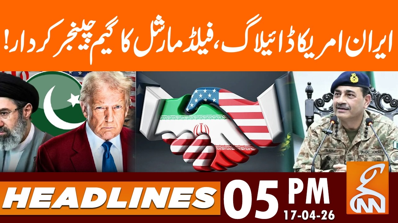 Iran–US Dialogue Begins? Field Marshal Game-Changer Role | News Headlines | 5 PM | 17 April 26 | GNN #Iran #USA #Pakistan #Diplomacy #BreakingNews #Geopolitics #PeaceTalks #MiddleEast #WorldNews #GlobalPolitics #GNN Khabar Hai- https://www.youtube.com/playlist?list=PLNSD0EXJ-HpIpegrHsSBKLgCSym6cZflp Live with Dr. Shahid Masood - https://www.youtube.com/playlist?list=PLNSD0EXJ-HpI2dx1FMTITt5ylb5-CJHVn View Point - https://www.youtube.com/playlist?list=PLNSD0EXJ-HpJUSI4N13FAIZmwBKQAGkn9& Face to Face - https://www.youtube.com/playlist?list=PLNSD0EXJ-HpLkW3p8lFzA8jP9uNjn0Wvo G Kay Sang with Mohsin Bhatti - https://www.youtube.com/playlist?list=PLNSD0EXJ-HpKiwCdN8LtpGKpXHGuB_XwL Media Talks and Press Conferences - https://www.youtube.com/playlist?list=PLNSD0EXJ-HpJ5ZgboRZ_Vezf-FnqQaEIF News Headlines - https://www.youtube.com/watch?v=VcWQnWyc5oE&list=PLNSD0EXJ-HpIvI6Ui2k8RBIpBEf5eGsWh 👇👇👇 DaisBook - https://www.youtube.com/@daisbookgnn ☝️☝️☝️Watch Our Comedy Show Hosted By Renowned Anchor Junaid Saleem ☝️☝️☝️ Subscribe to our YouTube Channel Twitter: https://twitter.com/gnnhdofficial Facebook: https://www.facebook.com/gnnhd.tv/ Instagram: https://www.instagram.com/gnnhd.official/ #GNN #headlines #BreakingNews