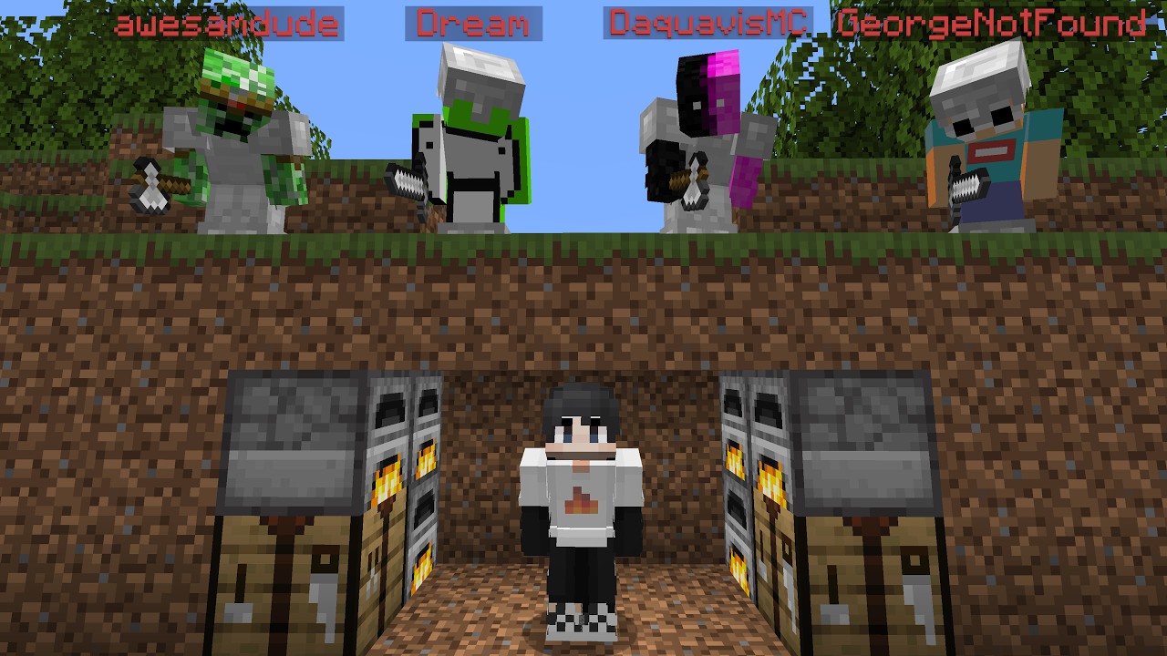 Minecraft Speedrunner VS 4 Infected Hunters REMATCH. Every time a speedrunner dies they become infected become a hunter! Follow my socials: ➽ Twitter - @sapnap ➽ Twitch - @sapnap ➽ Instagram - @sapnapinsta Dream: @dream George: @GeorgeNotFound Daquavis: @DaquavisMC Awesamdude: @awesamdude If this video gets 50k likes we will add another speedrunner :) This is a new series called Infected Minecraft Mahunt. Inspired by other popular infected gamemodes and then COMBINED with Minecraft Manhunt. Every time a speedunner dies they become infected and join the hunters team. Last time the speedrunners ALMOST won! WIll we be able to beat the game ? Or will we all become infected first..