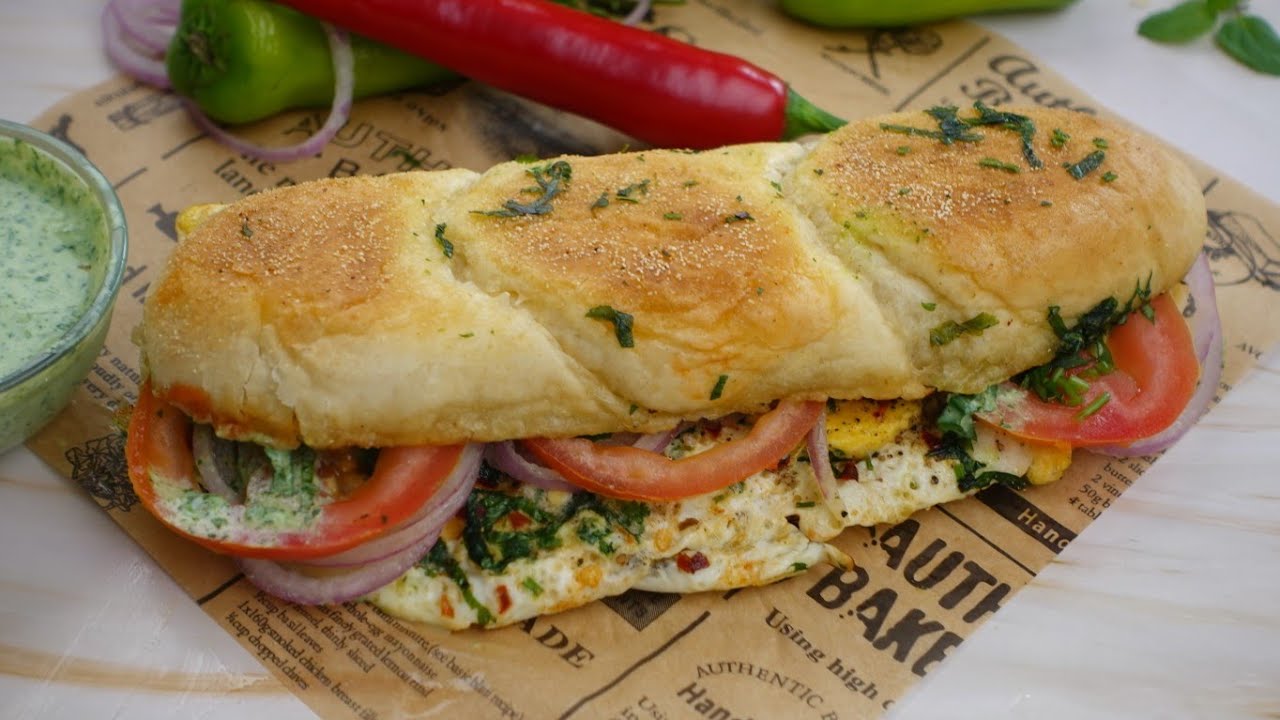#recipesoftheworld #Burger #recipe Thank you for watching Ingredients """""""""""""""""""""""""""""""""""""" Butter Oil as required 2 Eggs Salt to taste Black pepper powder Red Chilli flakes Fresh coriander chopped Sub rolls Tomato ketchup Green Chutney Onion Rings Tomato Slices """"""""""""""""""""""""""""""""""""" Green Chutney: Fresh coriander chopped Fresh mint leaves Green chilli chopped Yogurt 1/2 Cup Salt to taste