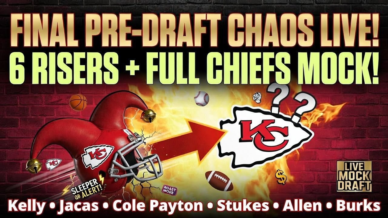 🚨 FINAL PRE-DRAFT LIVESTREAM – WE’RE SENDING IT ONE LAST TIME! 🚨 The Sports Buffoons go LIVE before the 2026 NFL Draft kicks off Thursday night! We’re breaking down six prospects we’re all fired up about: • BYU LB Jack Kelly • Illinois EDGE Gabe Jacas • NDSU QB Cole Payton (sleeper dual-threat alert!) • Arizona DB Treydan Stukes • Penn State RB Kaytron Allen • Oklahoma WR Deion Burks Then we jump into a **FULL LIVE group mock draft for the Kansas City Chiefs** — 7 rounds of arguing, roasting each other’s picks, and building the roster on the fly. Chat is wide open — drop your mocks and we might steal (or clown) them! Smash subscribe, hit the bell, and come hang with the Buffoons! 🏈🔥😂 #NFLDraft2026 #ChiefsDraft #jackkelly #SportsBuffoons #LiveMockDraft