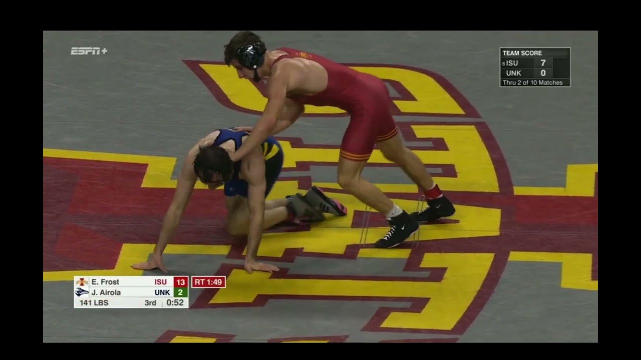 2025/26 Iowa State vs Nebraska Kearney wrestling dual 141lbs Evan Frost (ISU) tech fall Joseph Airola (UNK) I do not own this video, all credit/rights to ESPN/Big 12