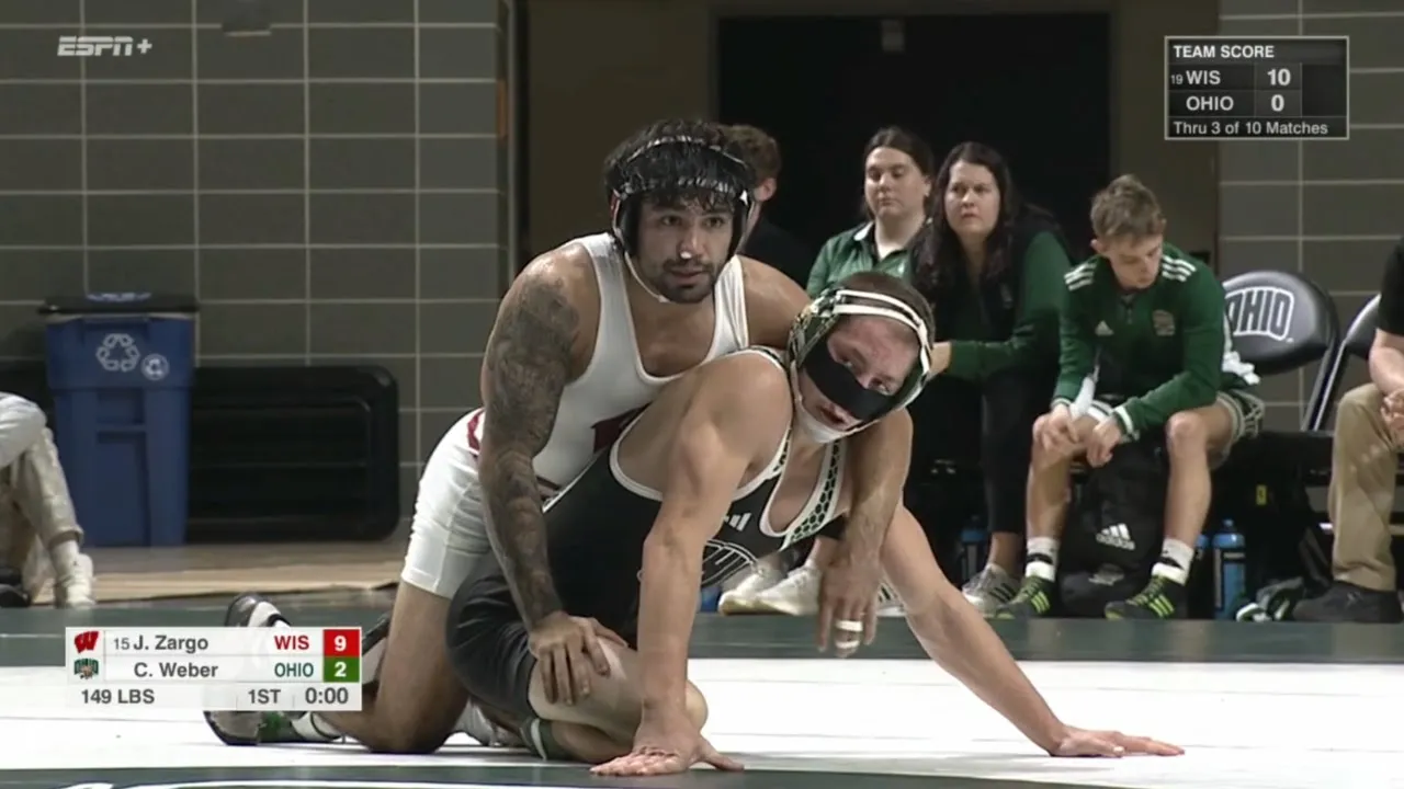 2025/26 Ohio vs Wisconsin wrestling dual 149lbs #15 Joseph Zargo (WISC) maj dec Carson Weber (OHIO I do not own this video, all credit/rights to ESPN/MAC