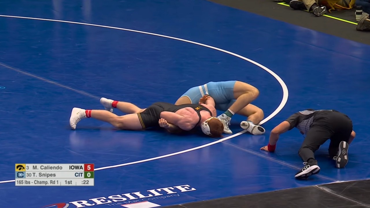 2026 NCAA Wrestling Championships 165lbs Mikey Caliendo (IOWA) fall Thomas Snipes (CIT) I do not own this video, all credit/rights to ESPN/NCAA