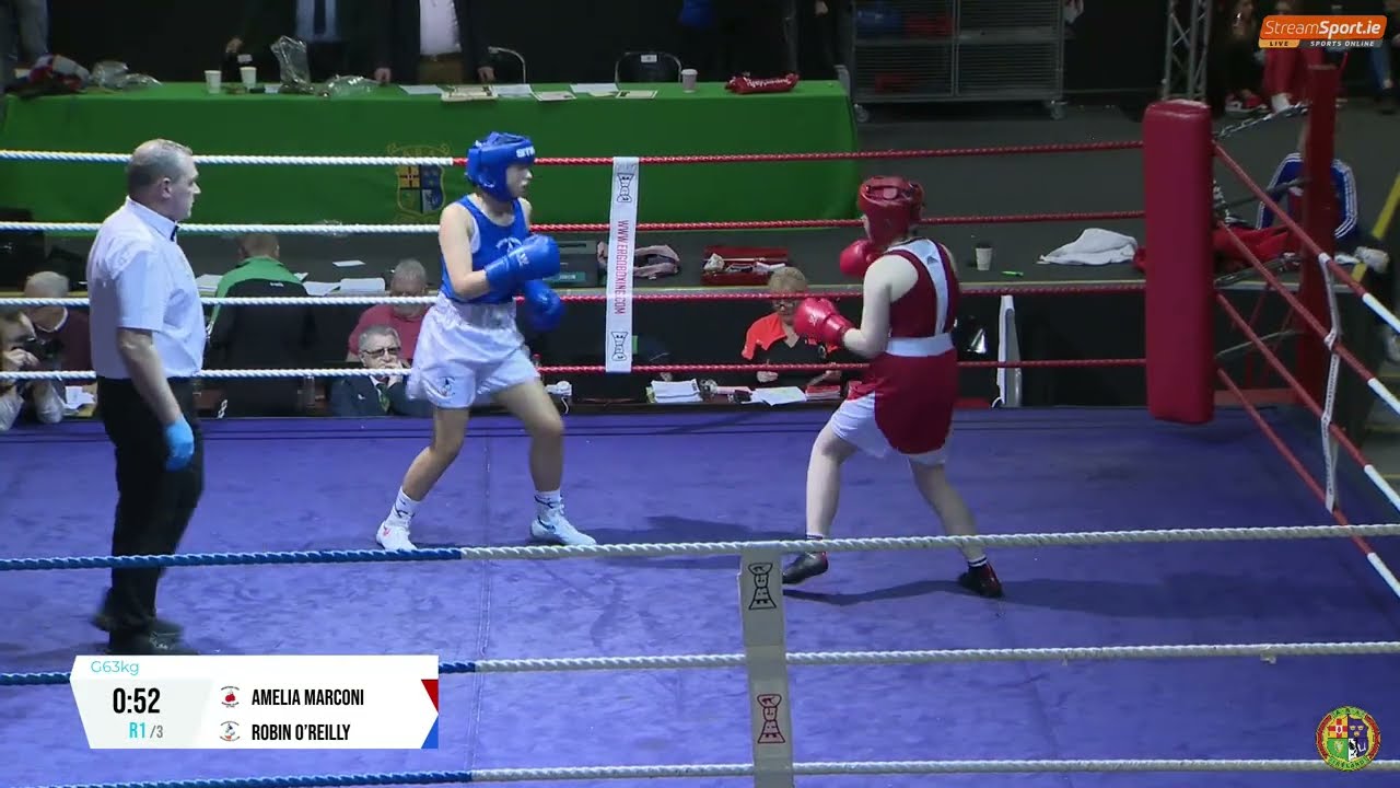 Amelia Marconi (Wexford CBS) and Robin O’Reilly (Monkstown D) contested the 2024 National BG3 Championship 63kg final, streamed by @streamsport-ie7508 #boxing #boxingireland #boxer #irishboxing #IABA #olympicsport #iaba #bout #fight #titleboxing
