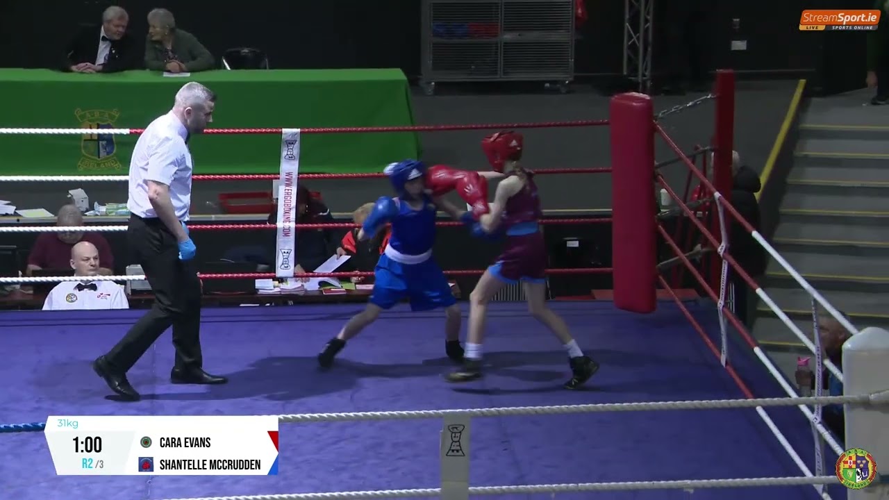 Cara Evans (Tredagh) and Shantelle McCrudden (Loughglynn) contested the 2024 National G1 Championship 31kg semi-final, streamed by @streamsport-ie7508 #boxing #boxingireland #boxer #irishboxing #IABA #olympicsport #bout #fight #titleboxing #boxingnews #boxeo #boxe #Box