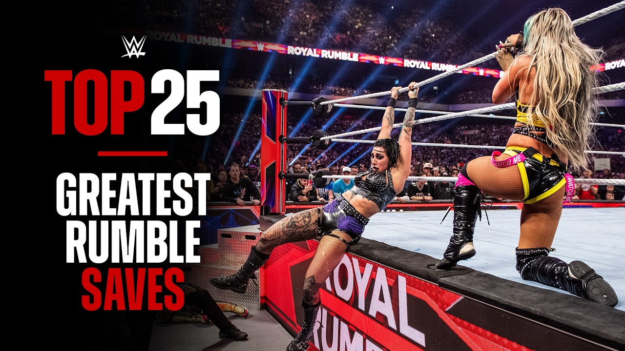 Watch the 25 most incredible saves in Royal Rumble history, featuring Kofi Kingston, Naomi, Rhea Ripley, Rey Mysterio and more. Where to watch WWE: https://wwe.com/wheretowatch Watch WWE on Netflix: http://netflix.com/WWE Watch WWE on ESPN: https://plus.espn.com/wwe Watch WWE on Peacock: https://pck.tv/3ZTjVE7 --------------------------------------------------------------------- Follow WWE for more exciting action! - Subscribe to WWE on YouTube: http://wwe.yt/ --------------------------------------------------------------------- Check out WWE.com for news and updates: http://goo.gl/akf0J4 Find the latest Superstar gear at WWEShop: http://shop.wwe.com --------------------------------------------- Check out these other channels! --------------------------------------------- WWE Vault: http://www.youtube.com/@WWEVault WWE Español: https://www.youtube.com/@wweespanol WWE Arabic: https://www.youtube.com/@wwearabic WWE NXT: https://www.youtube.com/@wwenxt WCW: https://www.youtube.com/@wcw UpUpDownDown: https://www.youtube.com/upupdowndown Celtic Warrior Workouts: https://www.youtube.com/@CelticWarriorWorkouts WWE Music: https://www.youtube.com/wwemusic --------------------------------------------- Subscribe to our Podcasts! --------------------------------------------- Raw Recap: https://youtube.com/playlist?list=PLqIVmFaHA8Bp7WjqbST0DvZWLCiXPXUt_ Six Feet Under with The Undertaker: https://www.youtube.com/@Undertaker What Do You Wanna Talk About? With Cody Rhodes: https://www.youtube.com/@CodyRhodes What's Your Story? With Steph McMahon: https://www.youtube.com/@StephanieMcMahon ------------------------------------ WWE on Social Media ------------------------------------ X: https://twitter.com/wwe Facebook: https://www.facebook.com/wwe Instagram: https://www.instagram.com/wwe/ TikTok: https://www.tiktok.com/@wwe ------------------------------------