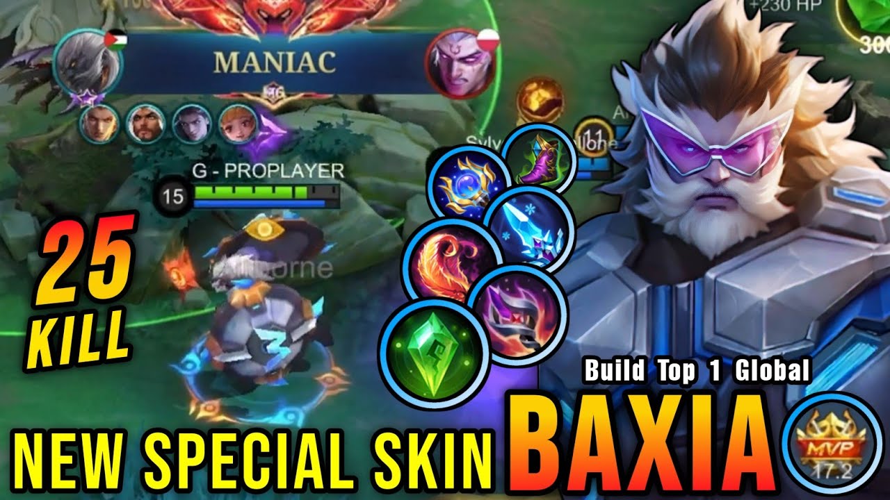 25 Kills + MANIAC!! Dauntless Shield Baxia New SPECIAL Skin!! - Build Top 1 Global Baxia ~ MLBB