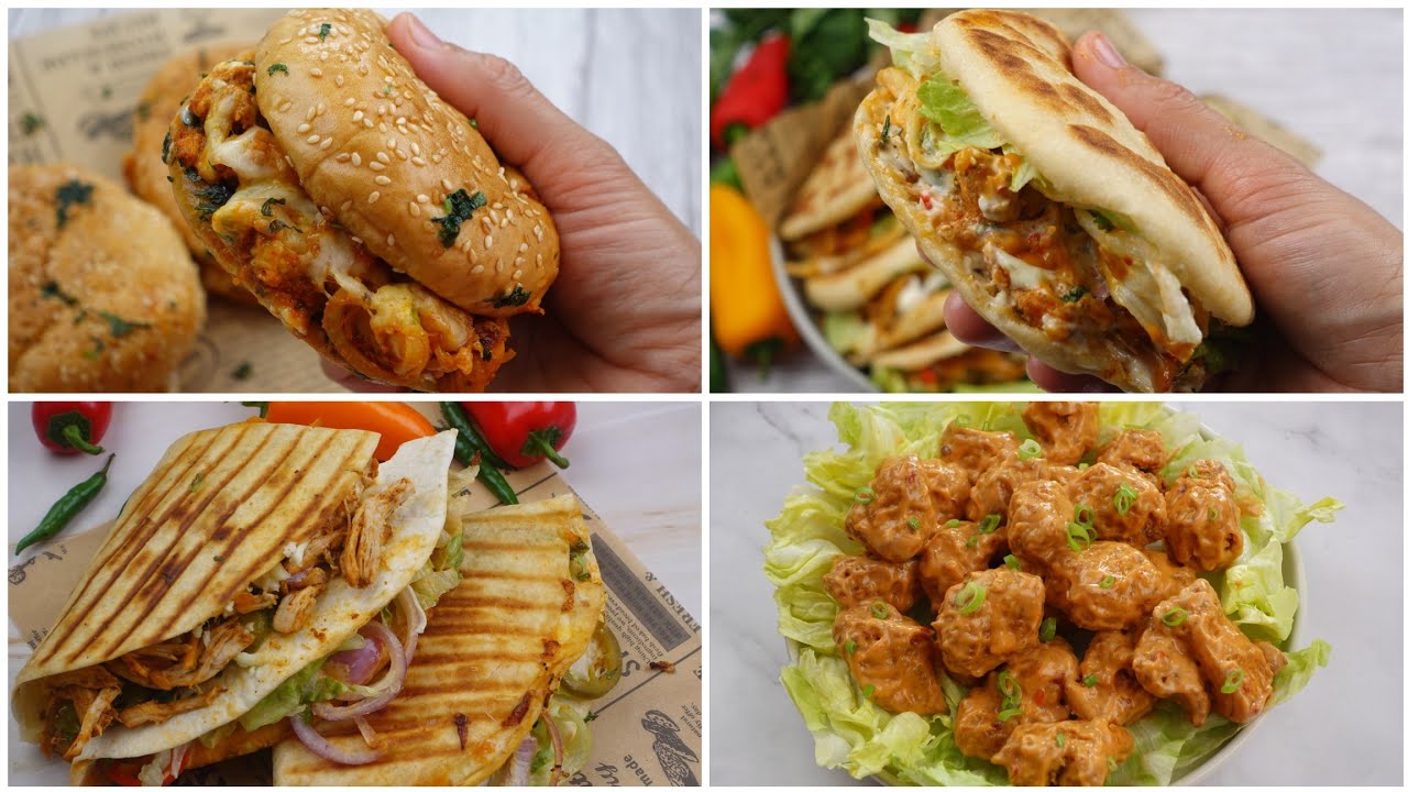 #recipesoftheworld #chickensnacks #Burger #Chicken #Shawarma #Wrap Thank you for watching 1:Chicken Burger 2:Chicken Shawarma Pocket 3:Chicken Wrap 4:Dynamite Chicken