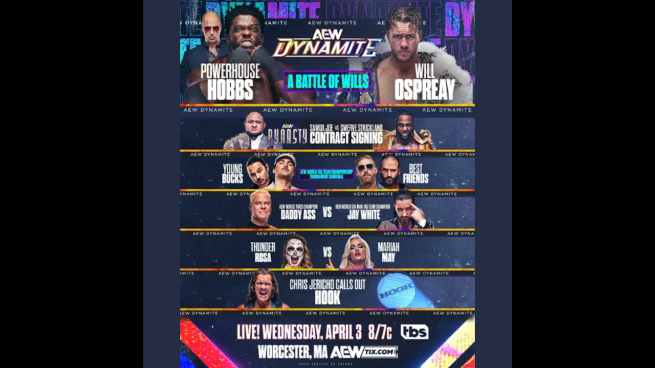 -Samoa Joe and Swerve Strickland contract signing for the AEW World Championship at AEW Dynasty -“The Young Bucks” Matthew Jackson and Nicholas Jackson vs. Orange Cassidy and Trent Beretta in an AEW Tag Team Title tournament semifinal match -Will Ospreay vs. Powerhouse Hobbs -Thunder Rosa vs. Mariah May for a shot at the AEW Women’s Championship -Jay White vs. Billy Gunn -Chris Jericho calls out Hook WE HAVE SOME GREAT MERCH ON TEE PUBLIC 👕 💈 MANSCAPED ✂ Get 20% Off and Free Shipping with the code "EPWSHOW" at Go to🤼♂️🤼♀️ Powerslam.TV Use coupon code “EPWSHOW” to get a free month when they subscribe. Follow our social media, podcasts, and merch accounts for the latest in pro wrestling. Follow our social media, podcasts, and merch accounts for the latest in pro wrestling. 🔗