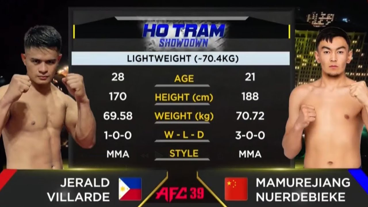 AFC39: SHOWDOWN 본 경기: 2025년 12월 6일 토요일 저녁 8시 장소: 바리어붕따우 더 그랜드 호짬 특설케이지 주최/주관: 엔젤스파이팅챔피언십, 커키버팔로, 더그랜드호짬 중계: AFC엔젤스파이팅 챔피언십 유튜브, 베트남 VTVcab 한국선수단: #주동조, #장성효, #김원기, #문준희 제 1경기 -65.8kg Featherweight Class Quoc Hoa Hunyh Cong vs Charlie Dando Charlie Dando TKO승 1R 48초(그라운드파운드) 제 2경기 -70.4kg Lightweight Class Jerald Villarde vs Mamurejiang Nuerdebieke Jerald Villarde의 반칙으로 인한 No Contest 종료 제 3경기 -56.7kg Flyweight Class Cláudio Coutinho vs Rhino Casipe Cláudio Coutinho 1R 2분 TKO승 (다스쵸크) 제 4경기 -77.2kg Welterweight Class Moon Jun Hee/문준희 vs Zhang Lei 문준희 1R 3분44초 TKO승 (암트라이앵글 쵸크) 제 5경기 -61.3kg Bantamweight Class Duc Manh Luu vs Kim Won Gi/김원기 Duc Manh Luu 1R 1분25초 TKO승 제 6경기 -120.2kg Heavyweight Championship Title Match Tserendash "Azza" Azjargal/아즈자르갈 vs Jang Sung Hyo/장성효 아즈자르갈 판정승(2:0) 제 7경기 -56.7kg Flyweight Championship Title Match Italo Freitas vs Joo Dong Jo/주동조 Italo Freitas TKO승 2R 2분20초 (리어네이키드 쵸크 탭아웃) #엔젤스파이팅챔피언십 #AngelsFightingChampionship #AFC39 #TheGrandHoTram #CockyBuffalo
