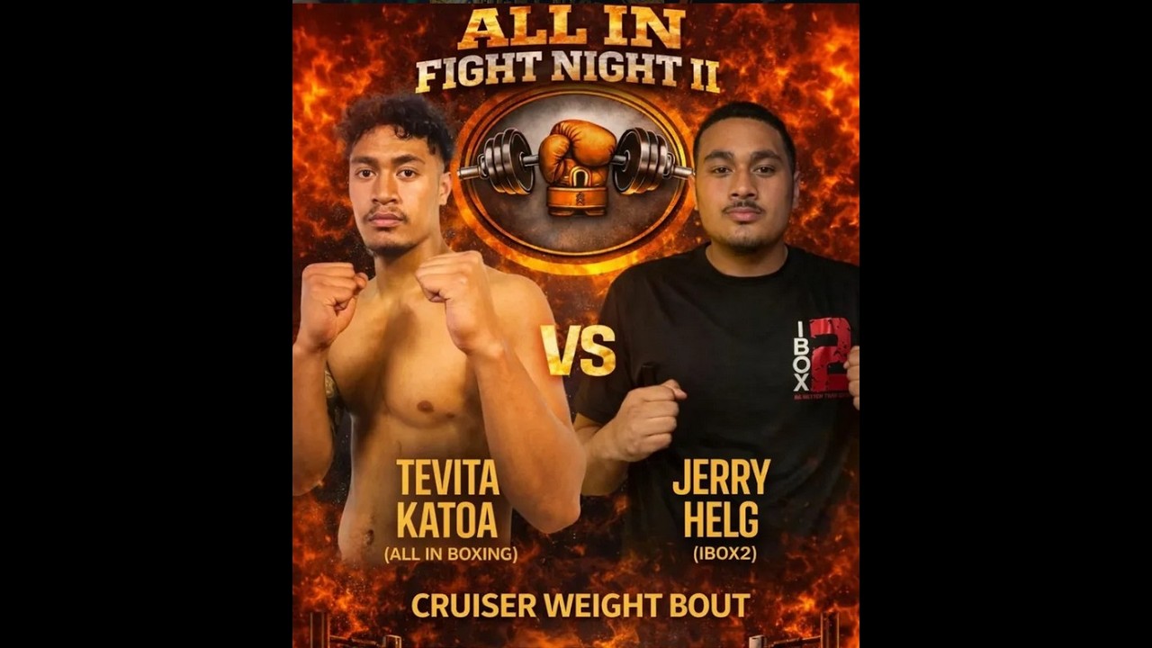 TEVITA KATOA vs JERRY HELG BOXING EVENT: ALL IN FIGHT NIGHT 2 🥊 Promoter: ALL IN BOXING 🎥 Filmed by: G2G Productions 📍 Location: 459 Roscommon Road, Clendon, Auckland, New Zealand #corporateboxing #nzboxing #g2gproductions Are you looking to capture your own sporting event, celebration, or special occasion? G2G PRODUCTIONS offers experienced video recording & livestreaming services tailored to meet your needs. 👉 Learn more about G2G PRODUCTION services: Link Tree: https://linktr.ee/g2gproductions Email: g2gproductions22@gmail.com Facebook: https://www.facebook.com/G2GProductionz Instagram: https://www.instagram.com/g2gproductions/ TikTok: https://www.tiktok.com/@g2gproductions 👉 Want to compete in upcoming events? Contact ALL IN BOXING for upcoming events on: Instagram: https://www.instagram.com/all_in_fightnight/ 🔔 Don’t forget to LIKE, SUBSCRIBE, and hit the BELL ICON for the latest highlights and releases from G2G Productions. Disclaimer: We do not own the rights to the music used in this video.