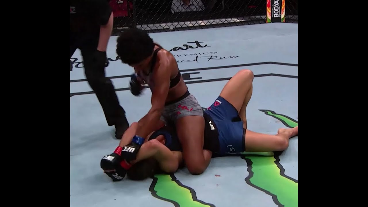 Female MMA ground and pound from the full mount position.