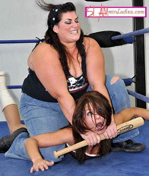 It takes barely 5 minutes into this contest before Betsy has Erica tapping and screaming out the words "I quit!" There's just one problem: With no referee around, there's no one to stop Betsy from inflicting more punishment. And that's bad, BAD news for Erica. For a full 30 minutes, Betsy puts Erica through the ringer, throwing everything in her brutal arsenal at poor Erica. From legal submission holds (nerve pinches, face claws, anklelocks, mandible claws, Surfboards) to brutal power moves (punches, kicks, running slam into the turnbuckles, reverse Atomic Drop) to just plain-old viciousness (setting Erica up in the Tree of Woe, biting, choking, hairpulling), Betsy makes Erica say the magic words "I quit" no fewer than 19 times throughout this one-sided squash job. She even gets creative in dishing out punishment, using a baseball bat to apply the pressure in a Camel Clutch and a fork to apply a nerve pinch. A golf club also makes a very painful appearance. Erica never gets out of the gate in this beatdown, and spends the entirety of the match screaming in pain and begging Betsy for mercy. But there's none to be found, as the ruthless Betsy won't stop until she's satisfied that she's administered a beating that Erica won't soon forget.
