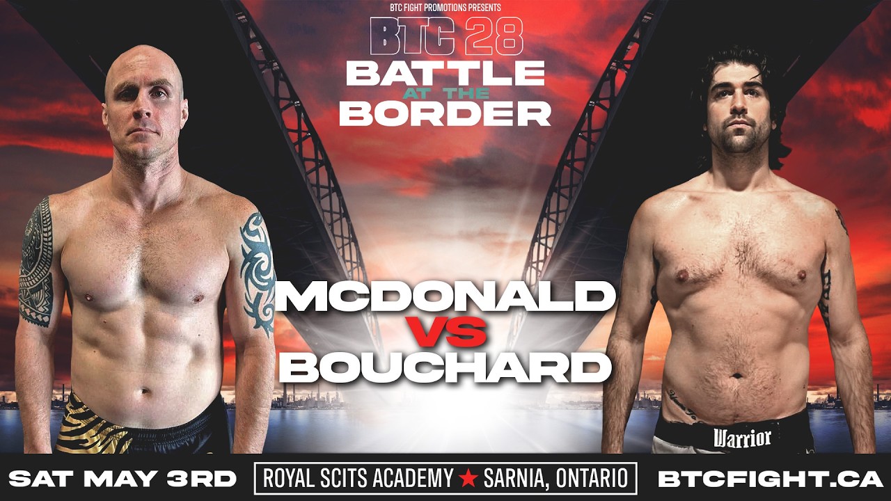 BTC 28: Battle at the Border Craig McDonald vs. Brandon Bouchard Venue: Royal SCITS Academy City: Sarnia, Ontario Date: Sat May 3rd, 2025 Website: https://btcfight.ca Instagram: https://instagram.com/btcfight FaceBook: https://facebook.com/btcfight TikTok: https://tiktok.com/@btcfight Twitter: https://twitter.com/btcfight