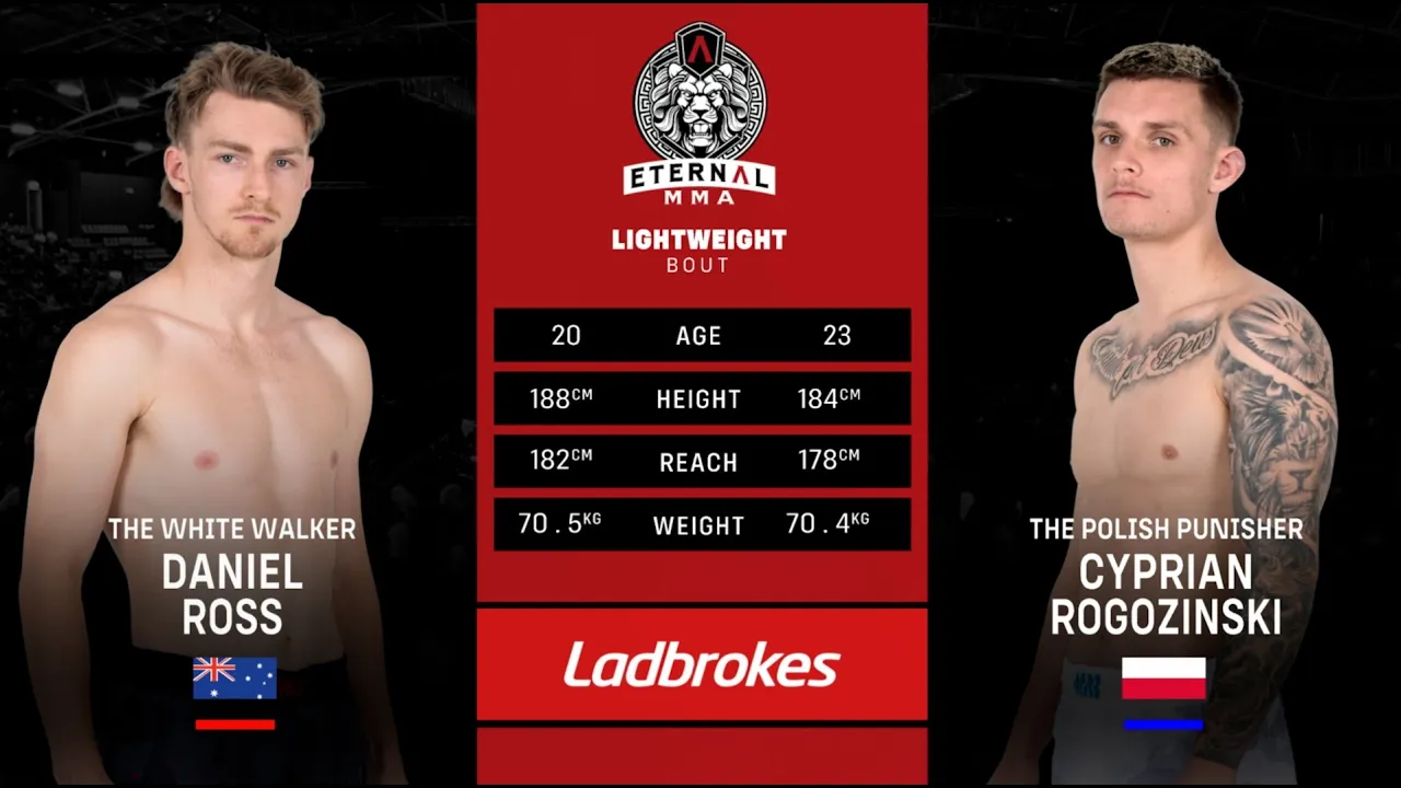 🔥 Welcome to Eternal MMA 98 ! 🔥 Watch as Daniel Ross takes on Cyprian Rogozinski in a thrilling matchup that showcases the best of Australian mixed martial arts! Eternal MMA is proud to be Australia and New Zealand's premier MMA promotion, bringing you the most electrifying fights from across the region. 🌟 About Eternal MMA: Based on Queensland's Gold Coast, we promote up to 11 events per year, featuring a talent pool filled with the finest MMA athletes, from rising amateurs to seasoned pros. Our events are known for their intensity, with undercards showcasing top amateur fighters from the Australia-Pacific region, and main cards packed with professional athletes in the most competitive bouts. 💥 Why You Should Watch: - Experience the excitement of live MMA action. - Discover the future stars of the sport. - Enjoy exclusive highlights, KO's, TKO's, and submission victories! 👉 Don't forget to subscribe to the Eternal MMA YouTube channel for all the latest fights and highlights, including full fight recaps, behind-the-scenes content, and more! Follow Us: - Facebook: Eternal MMA - Instagram: @EternalMMA - TikTok: @eternalmma - OnlyFans: Eternal MMA - Threads: @eternalmma 🌐 For more information, visit www.eternalmma.com. Join the conversation using hashtags: #EternalMMA #MMA #FightNight #AustralianMMA #FullFight #UFC #UFCFightPass