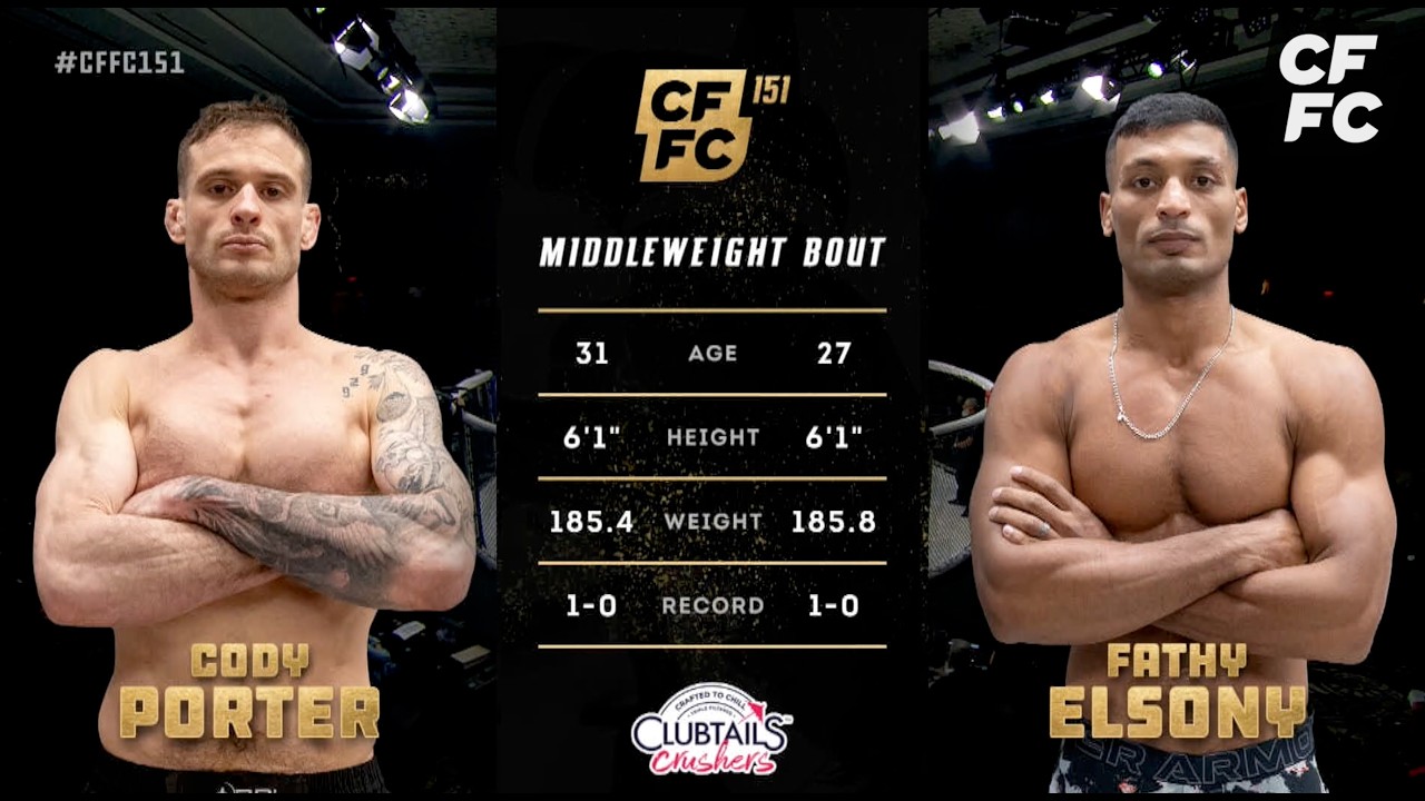 Fathy Elsony and Cody Porter met in a middleweight bout on the preliminary card at CFFC 151, which took place at Florida's spectacular Seminole Hard Rock Hotel & Casino. John Morgan and Michelle Waterson-Gomez called the action live. Check out the rest of the night's preliminary action on the Cage Fury Fighting Championships YouTube channel. To see the night's six-fight main card, head to UFC FIGHT PASS. Catch the full replay on UFC FIGHT PASS: https://ufcfightpass.com/video/932676 Subscribe for full fight coverage, highlights, and exclusive CFFC content. #cffc151 #cagefury