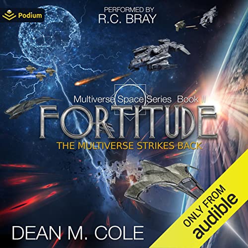 Publisher's Summary The only way forward is farther back into an alien past… Military special operators battling across the multiverse. Present-day fighter pilots thrust into space combat. Both teams waging an all-or-nothing war to reset an altered timeline. Still trapped decades in the past, Vaughn and his band of military pilots and SAS special operators battle the Necks across the multiverse, now wielding powerful new allies and weapons, but the enemy robots refuse to go peacefully into the night. Attacking dirtside and spaceside simultaneously, both teams fight to flip the fortunes of battle because there's only one answer when the question is them or us. Fortitude pits advanced alien warships, secret weapons, brave heroes, and a smart-assed battlebot against a mechanized enemy bent on destroying all life. ©2022 Dean M. Cole (P)2022 Podium Audio