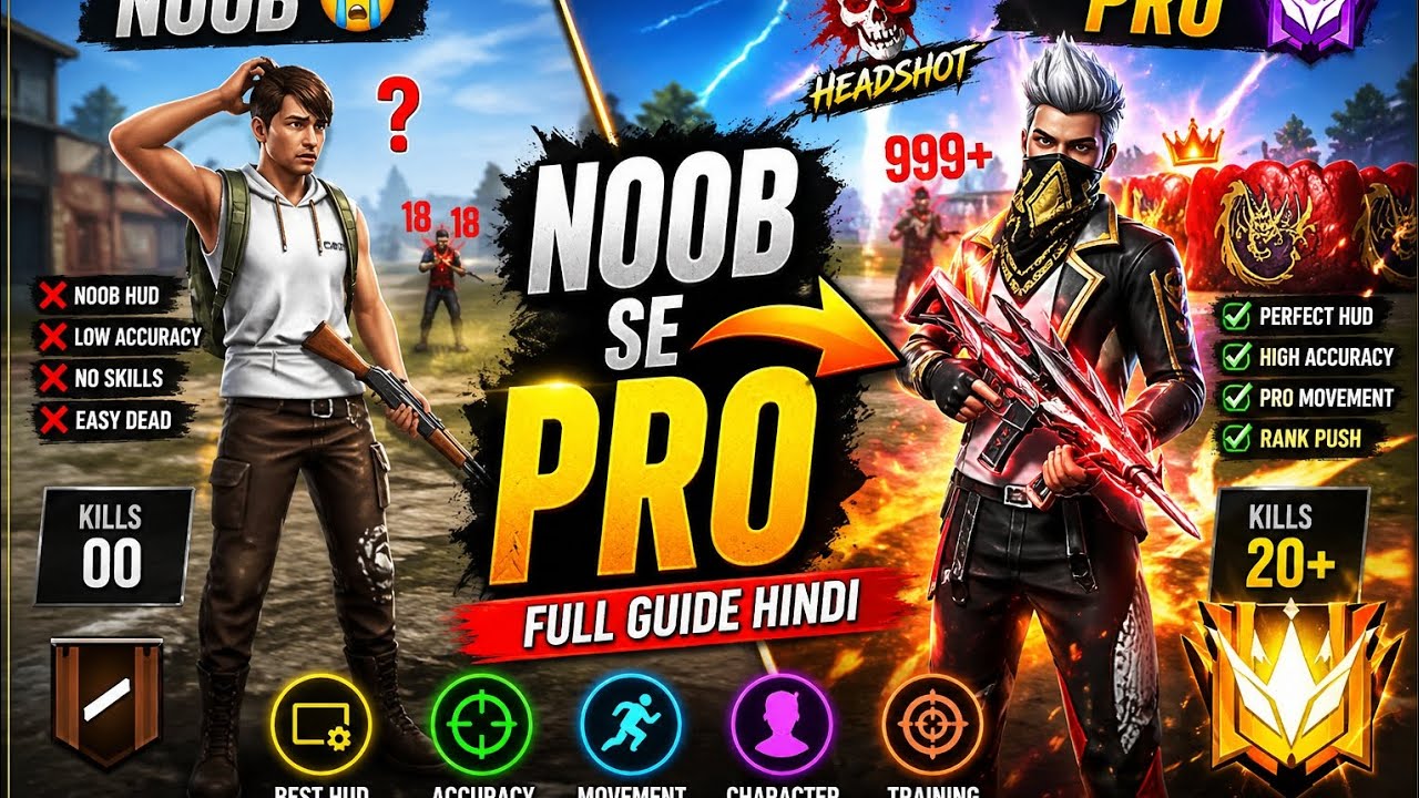 Kya tum Free Fire me **Noob Se Pro** banna chahte ho? Agar haan, to ye **Free Fire Noob Se Pro** video tumhare liye hi hai 🔥 Aaj ke time me bohot saare players **Free Fire Noob Se Pro** ka dream dekhte hain, lekin sahi guidance na hone ki wajah se **Noob Se Pro Free Fire** journey wahi ruk jaati hai. Is video me maine step by step bataya hai ki kaise tum **Free Fire Noob Se Pro Gameplay** bana sakte ho, chahe tum bilkul beginner kyu na ho. Is **Free Fire Noob Se Pro Hindi** video me tum seekhoge: ✅ Free Fire **Noob Se Pro HUD aur Sensitivity** ✅ Free Fire **Noob Se Pro Finger Speed Control** ✅ Free Fire **Noob Se Pro Movement aur Gloo Wall Trick** ✅ Free Fire **Noob Se Pro Accuracy Control Tips** ✅ Free Fire **Noob Se Pro Character Skill Combination** ✅ Free Fire **Noob Se Pro Training Ground Practice Routine** Agar tum sach me **Noob Se Pro Free Fire Player** banna chahte ho, to is video ko poora dekho aur daily practice karo. Yaad rakho, har **Free Fire Pro Player** kabhi na kabhi **Noob Se Pro** bana hai 💯 🔥 Ye video un players ke liye hai jo: - Free Fire me **Noob Se Pro** banna chahte hain - Free Fire gameplay improve karna chahte hain - Free Fire rank push aur pro movement seekhna chahte hain Video pasand aaye to LIKE zaroor karna 👍 Channel ko SUBSCRIBE karo 🔔 Aur comment me likho — **NOOB SE PRO** 🔥 free fire noob to pro free fire tips hindi free fire pro gameplay free fire training tips free fire gloo wall practice free fire hud sensitivity free fire headshot tips free fire movement tips free fire gameplay improve free fire beginners guide free fire pro player tips free fire rank push tips free fire close fight tips free fire accuracy tips free fire character skill combo#FreeFire #NoobToPro #FreeFireHindi #FreeFireTips #FreeFireGameplay #FFProTips #FreeFireTraining #FreeFireNoobSePro #NoobSePro #FreeFireHindi