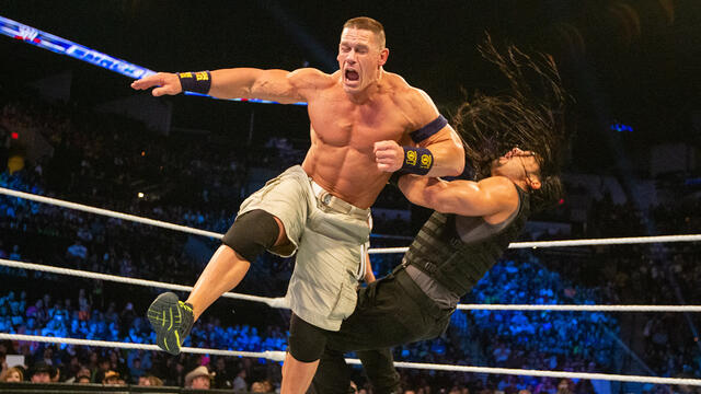 CM Punk and John Cena form a tenuous tandem against the soaring Shield in a Handicap Match.