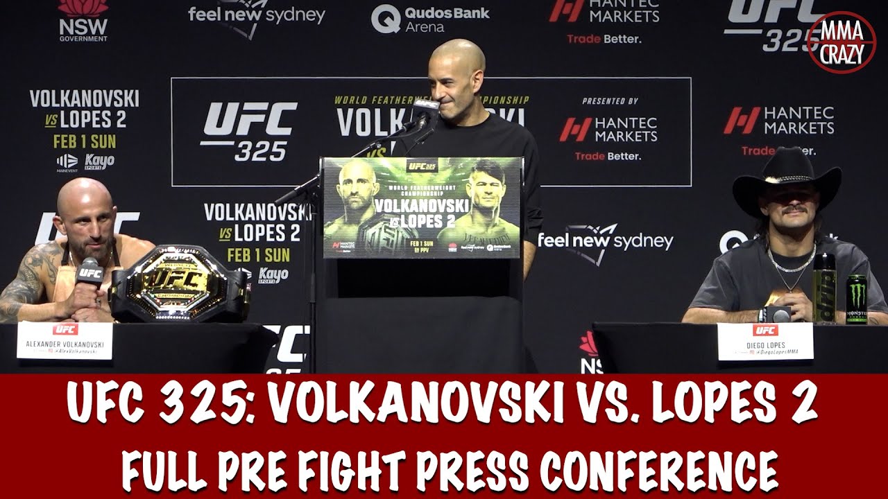 Full UFC 325 Pre Fight Press Conference with Alexander Volkanovski, Diego Lopes, Benoit Saint Denis, Dan Hooker, Rafael Fiziev, Mauricio Ruffy, Tallison Teixeira, Tai Tuivasa, Quillan Salkilld, Jamie Mullarkey, Twitter: http://www.twitter.com/MMACrazy Instagram: http://www.Instagram.com/MMA_Crazy Click on the link below to subscribe http://www.youtube.com/user/mmacrazytv?sub_confirmation=1