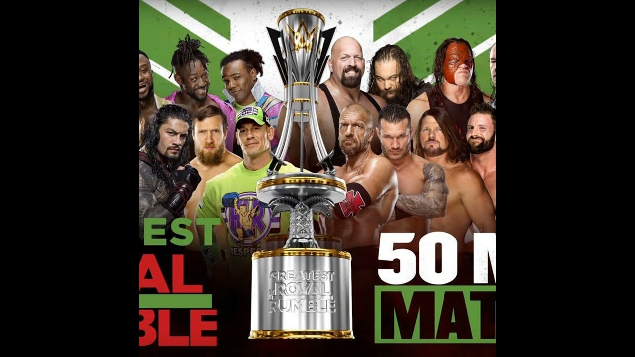 The Greatest Royal Rumble 2018 Preview and Predictions The WWE premiers the greatest Royal Rumble pay-per-view on Friday April 27th on the WWE Network. The show will begin at 12 p.m. eastern time The schedule commentary team for this show will be Jerry The King Lawler and Jim Ross John Cena vs Triple H U.S. Title Match Jeff Hardy(c) vs Jinder Mahal Intercontinental Title Match Fatal 4 Way Ladder Match Seth Rollins (c) vs The Miz vs Finn Balor vs Samoa Joe Raw Tag Team Title Match "Woken" Matt Hardy and Bray Wyatt vs Sheamus and Cesaro Crusierweight Title Match Cedric Alexander (c) vs Winner of Gauntlet Match on 205 Live WWE Title Match AJ Styles (c) vs Shinsuke Nakamura Casket Match Rusev vs The Undertaker SD Live Tag Title Match The Bludgeon Brothers (c) vs The Usos Universal Title Match Steel Cage Brock Lesnar (c) vs Roman Reigns 50- man Greatest Royal Rumble Match