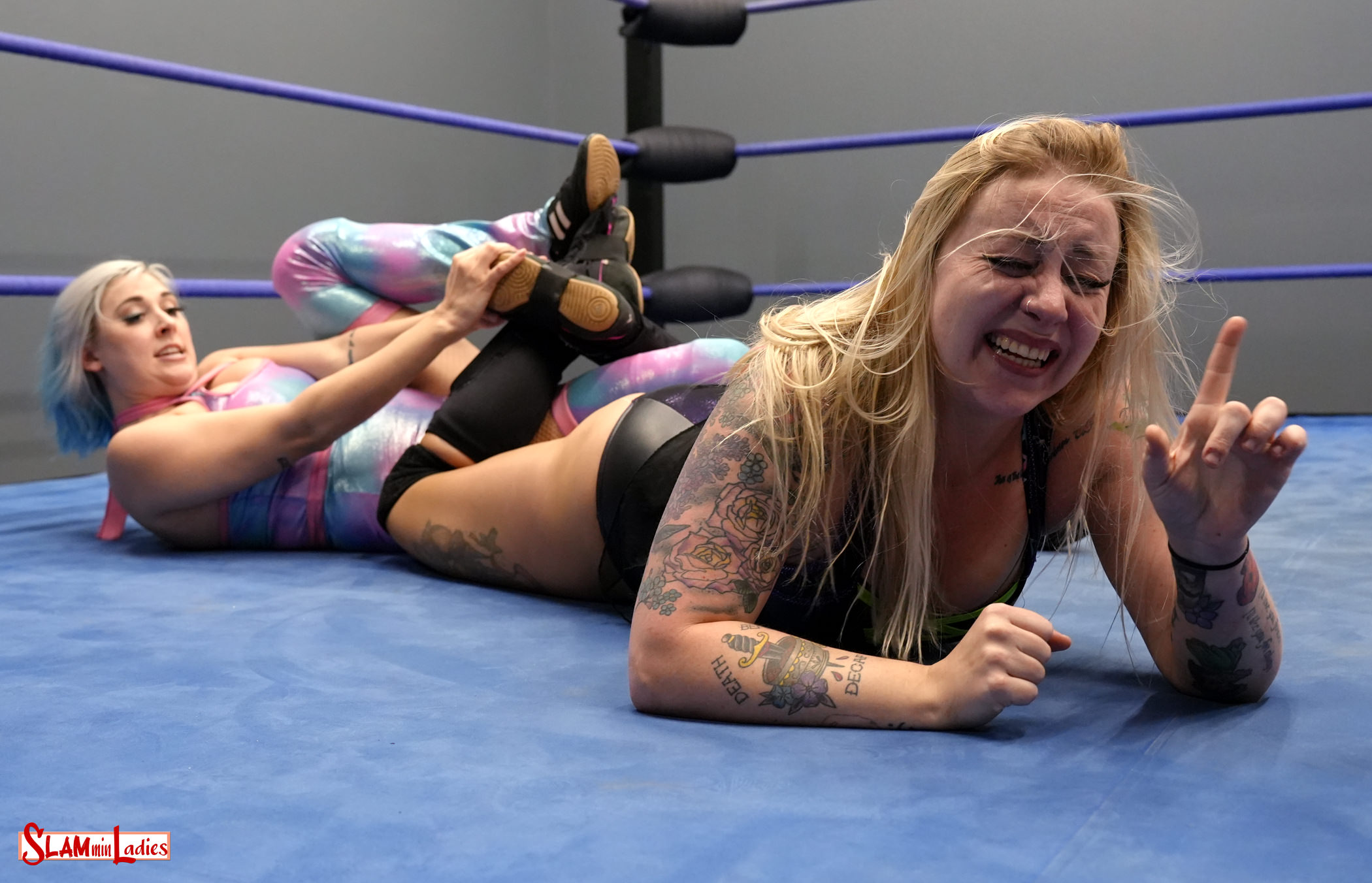 Heather seems quite energetic while awaiting the start of this one and carries that energy into the match with Kimber forced to match her in a very athletic opening exchange. But when one grappler takes a page out of Lexie Fyfe’s book the pace slows dramatically. An Anklelock and single leg grapevine return the favor and neither wrestler can be blamed for the spring having gone from their step. One wrestler resorts to corner work and strikes while the stays with submissions, a Lotus Lock and bodyscissors in this case. A dizzying display of near falls has referee Eliza Haze quite busy but it’s a Sidewalk Slam that kicks one wrestler to the curb.