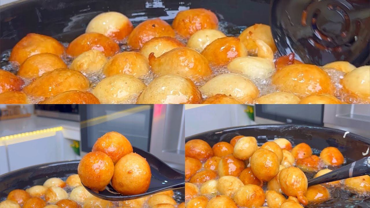 2.5 kg/18 cups of of flour 3 cups of sugar 1/4 cup of yeast 1 teaspoon of salt A teaspoon of nutmeg 9 cups of warm water Allow it to proof for 45 minutes after mixing and fry. ~ Will you be trying this?
