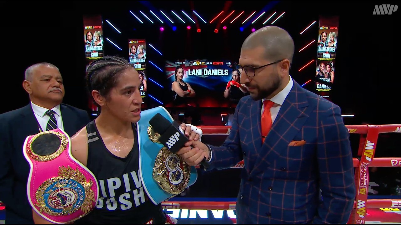 Lani Daniel's post-fight interview by Ariel Helwani at MVPW 02 Fight Night. - Follow us on social media: ⬇️ Instagram: https://www.instagram.com/mostvaluablepromotions/ Twitter: https://twitter.com/MostVpromotions TikTok: https://www.tiktok.com/@mostvaluablepromotions Threads: https://www.threads.net/@mostvaluablepromotions #MostValuablePromotions #MVP #JakePaul #AmandaSerrano #WannaWalton #Boxing #MostValuableProspects