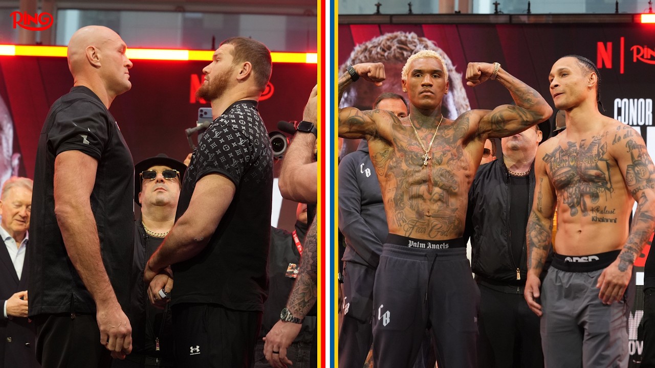 Subscribe NOW at: https://bit.ly/m/TheRingMagazine Watch Tyson Fury, Regis Prograis, Conor Benn and Arslanbek Makhmudov all make weight ahead of their huge fights tomorrow night at Tottenham. #TysonFury #ConorBenn #RegisPrograis Find More On Our Socials: Instagram: https://www.instagram.com/ringmagazine/?hl=en X: https://x.com/ringmagazine Facebook: https://www.facebook.com/RingMagazine/ TikTok: https://www.tiktok.com/@ringmagazine?lang=en