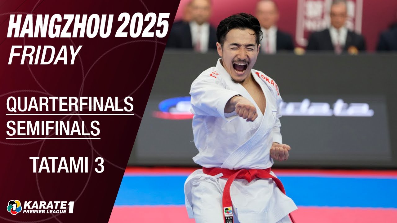 Karate1 HANGZHOU: FRIDAY - Quarterfinals & Semifinals - Tatami 3 | WORLD KARATE FEDERATION Watch the quarterfinals and semifinals in Kata and Kumite on Tatami 3 of #Karate1Hangzhou SUBSCRIBE ► http://bit.ly/N7c4H0 Official YouTube channel of the World Karate Federation *********************************** The World Karate Federation in Social Media: YouTube: https://www.youtube.com/user/WKFKarateWorldChamps Instagram: http://instagram.com/worldkaratefederation Twitter: https://twitter.com/worldkarate_wkf Facebook: https://www.facebook.com/wkfofficial TikTok: @worldkaratefederation Web: http://wkf.net/