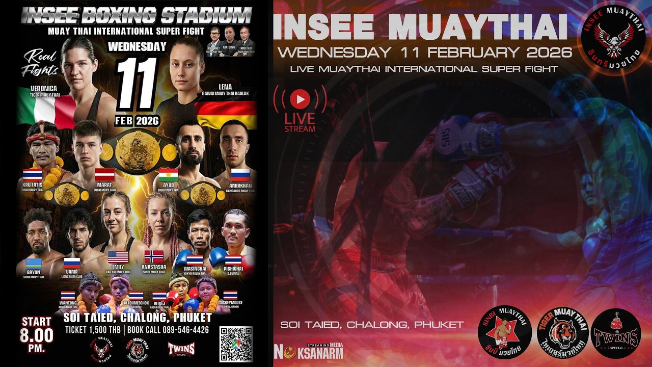 INSEE BOXING STADIUM – Wednesday, 11 February 2026 ‼️ 🥊 Get ready for another electrifying night of Muay Thai action in Phuket! 📍 Location: @inseemuaythai 🎉 Don’t miss the chance to witness raw talent and warrior spirit LIVE! 🏟️ Venue: Insee Boxing Stadium 📌 Address: Soi Ta-iad, across from Mini Big C,Phuket 🗓️ Date: Wednesday, 11 February 2026 🕘 Time: 8:00 PM 🎫 Tickets:Gym Shop At the door 💸 Prices: Bleachers – 1,500 THB