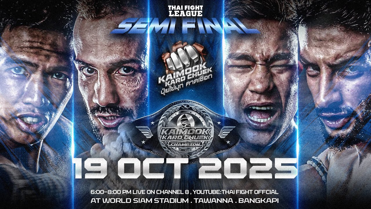 Thai Fight League on October 19th! Get ready for an electrifying night of action as the semi-finals of “Kaimook Kard Chuek 2025” heat up! It’s a knockout round — one loss means elimination. The event features a clash between “Petcheak” and “Poya”, followed by an intense showdown between “Seyedshaho” and “Singhakhao.” But that’s not all — fans can look forward to five thrilling Super Fights, including “Chalarmdam” and “Surin” along with two fighters from Khao Bin Central Prison, “Padejsuek” and “Singsamut.” THAI FIGHT LEAGUE #88 🗓️ On Sunday, October 19, 2025 ⏰ LIVE 6 p.m. to 8 p.m. (ICT) 📍 At WORLD SIAM STADIUM, Tawanna, Bangkapi BKK 📺 TH Channel 8 Press 27 (TH & EN) 🇹🇭 ไลฟ์สด youtu.be/8woXhcdynvQ . #ThaiFightLeague #THAIFIGHT #KardChuek #ไทยไฟท์ลีก #ไทยไฟท์ #ไทยไฟท์ล่าสุด #muaythai #MuayBoran #thaifightkardchuek . Facebook : Thai Fight : https://www.facebook.com/thaifight.official/ Instagram : https://www.instagram.com/thaifight_official/ Twitter : https://twitter.com/THAIFIGHT_TWT Tiktok : https://www.tiktok.com/@thaifight.official Website : http://www.thaifight.com/