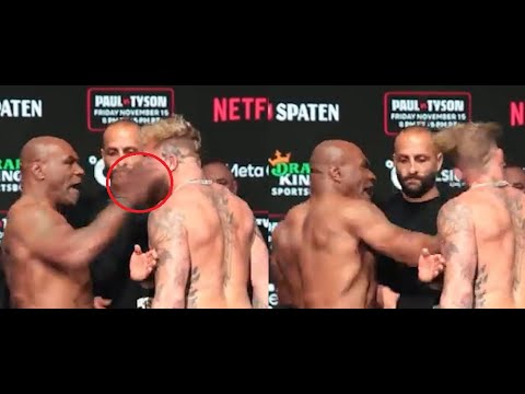 Mike Tyson slapping Jake Paul before their Netflix special boxing fight Friday November 15.