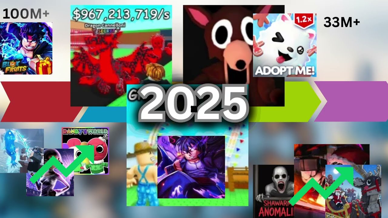 Welcome to the Most Played Roblox Games of 2025! This video talks about the daily visits, monthly visits, and even all-time visits! From Blox Fruits gaining 2B visits a month, to Steal A Brainrot gaining 10B a month, and 25M CCU, 2025 is a very interesting year! Credits Enzomazing - Layout/Golden Highlight thingy majig inspiration LameLee - Video inspiration What i Use OBS-Recording AlienArt-Gathering Data DaVinci Resolve - Editing Rolimons- Data Music in order! Robin Hustin - On Fire Link: https://www.youtube.com/watch?v=S0STHSOPPSM&list=RDS0STHSOPPSM&start_radio=1 Distrion & Electro-Light - Drakkar Link: https://www.youtube.com/watch?v=YJTae5ScvQA&list=RDYJTae5ScvQA&start_radio=1 REKZ!, freddz808 - SCREAM OUT LOUD Link: https://www.youtube.com/watch?v=4pqLYacZuko&list=RD4pqLYacZuko&start_radio=1 About the channel Have you ever been interested in statistics? Well, this is the channel for you! Welcome to Statastic!. Line Graphs, and Bar Graphs of YouTube Channels, Video Games, you name it! (If you ever need to use my videos for any inspiration, be sure to credit my channel using @StatasticOfficial !) Anyways, Welcome to the channel, and enjoy the show! Hashtags #roblox #robloxgames #newyear #ncs #games #gamecomparison #gaming #youtube #youtubevideo #viral #viralvideo #viralyoutubevideo #utube #adoptme #stealabrainrot #growagarden #99nightintheforest #mm2