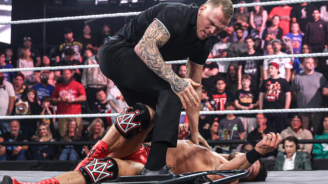 Myles Borne shows his aggression during an attack on Ethan Page. Catch WWE action on the ESPN App, Netflix, Peacock, USA Network, CW Network and more.