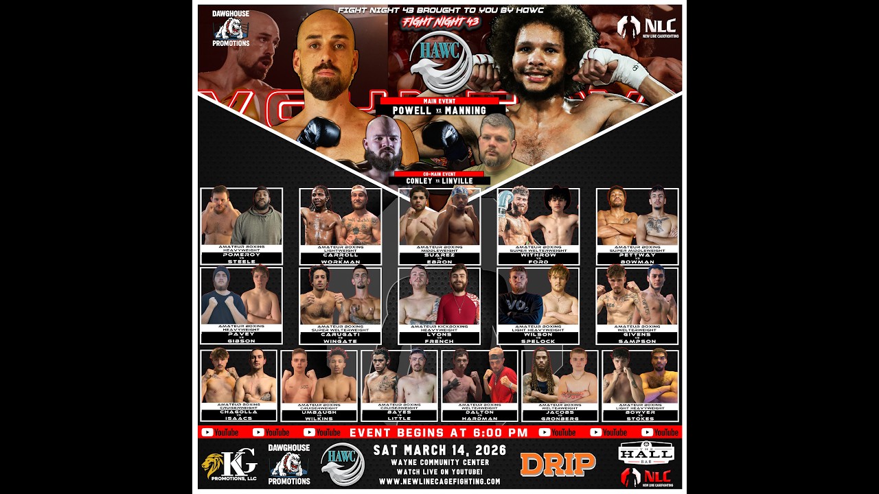 NLC and Dawghouse Promotions Present: NLC Fight Night 43 March 14, 2026 - 6:00 PM Wayne, WV Live Professional and Amateur Boxing! Join this channel to get access to perks: https://www.youtube.com/channel/UCZoxYen5PGFcOFxW5znMJnw/join