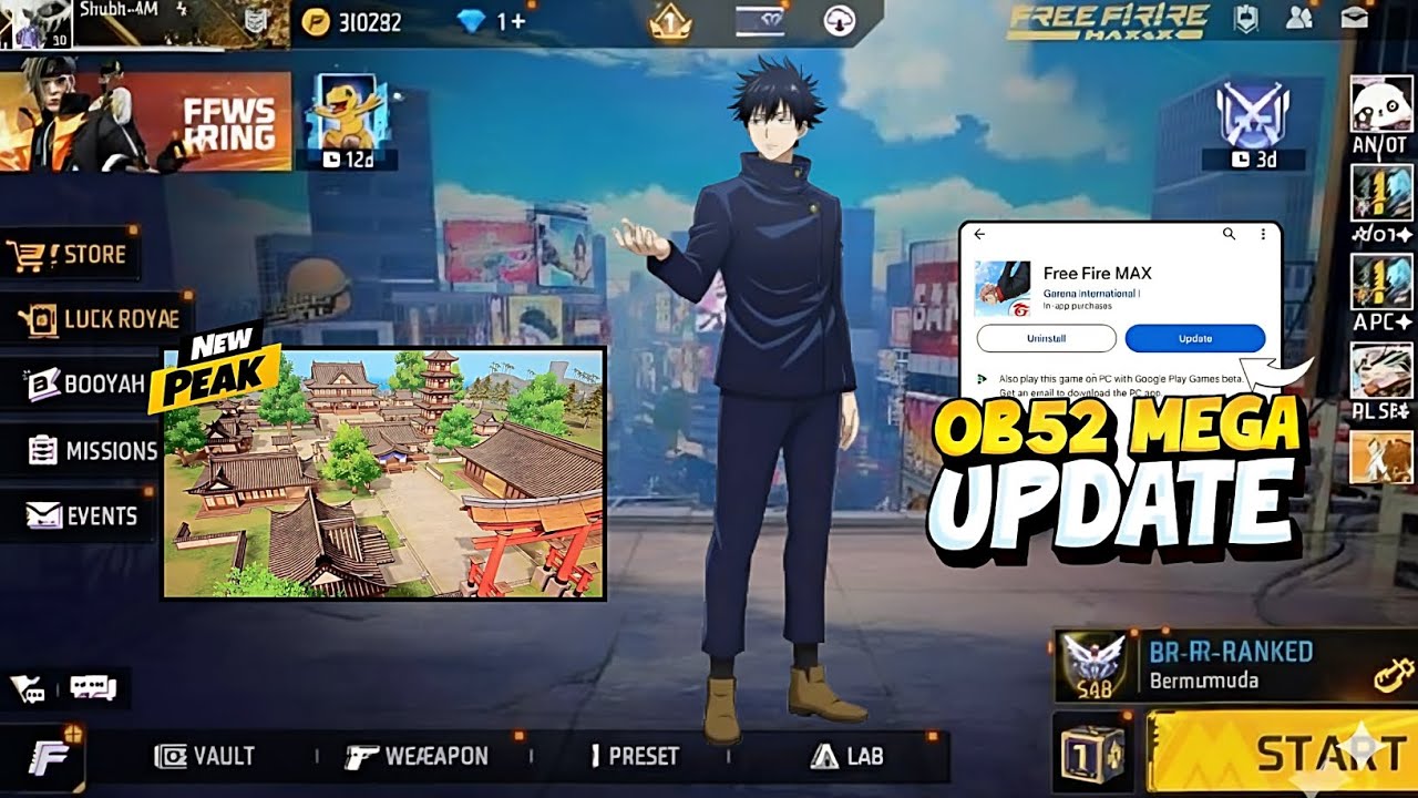 OB52 Update x JUJUTSU KAISEN Collaboration 🔥 free fire ob52 update free fire update free fire india release date free fire advance server
