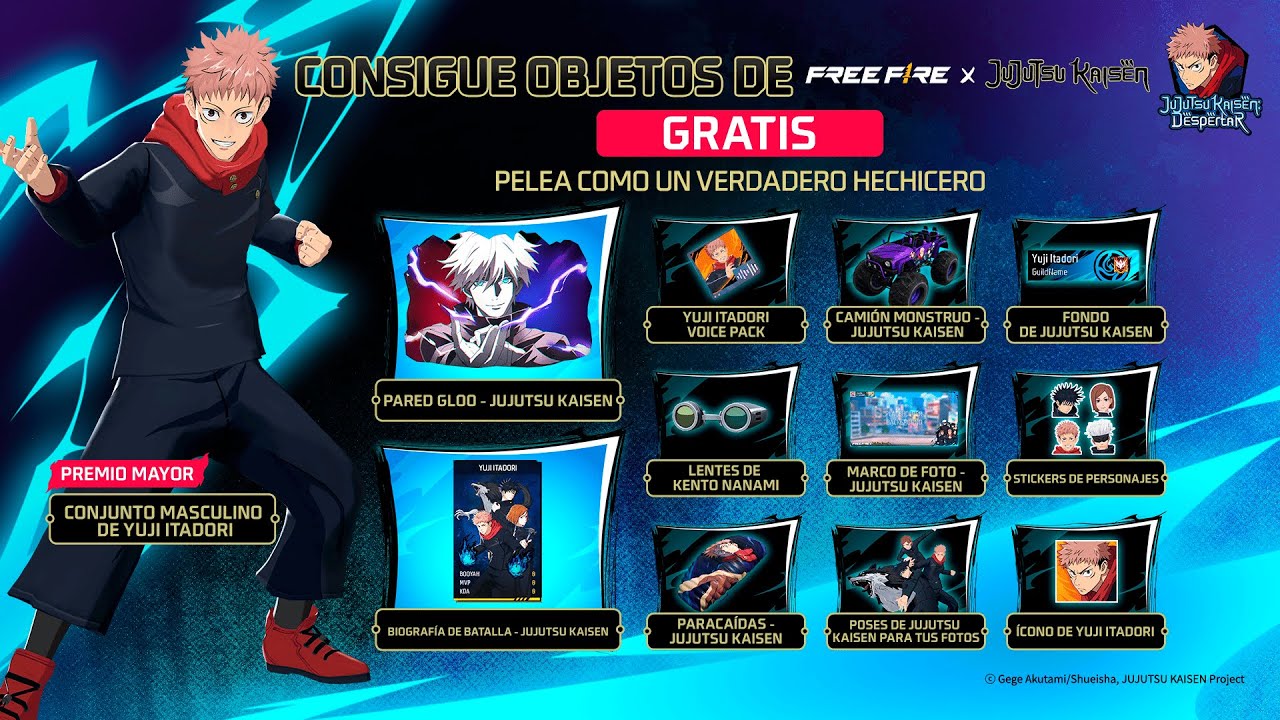 ¡Yuji Itadori ha entrado al campo de batalla! Con su llegada, también podrás conseguir muchas recompensas gratis. A partir del 14 de enero, juega Free Fire para obtener estos increíbles objetos con temática de Jujutsu. #FreeFirexJujutsuKaisen #FreeFire #JujutsuKaisen