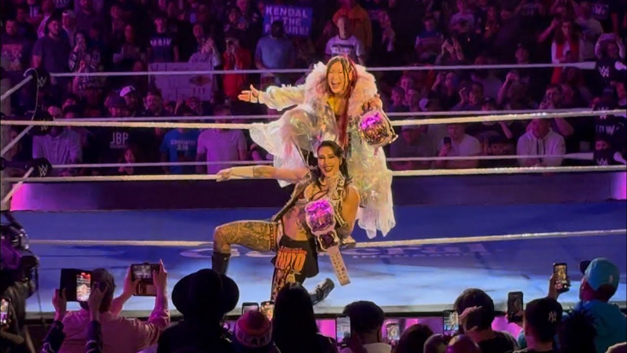 WWE Women’s Tag Team Champions, Rhea Ripley & IYO SKY make their entrance in Charlotte, NC to take on Giulia & Kiana James!